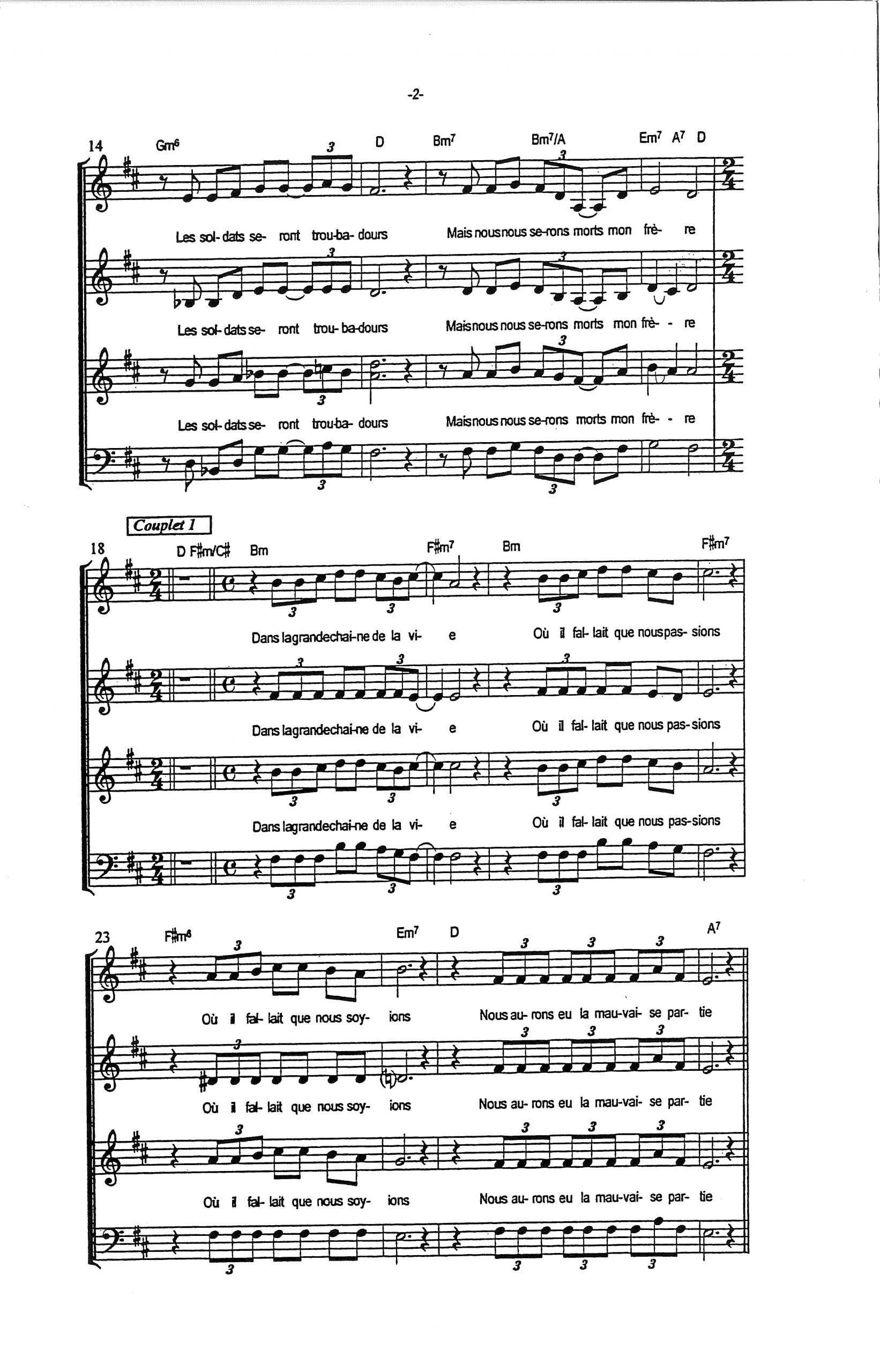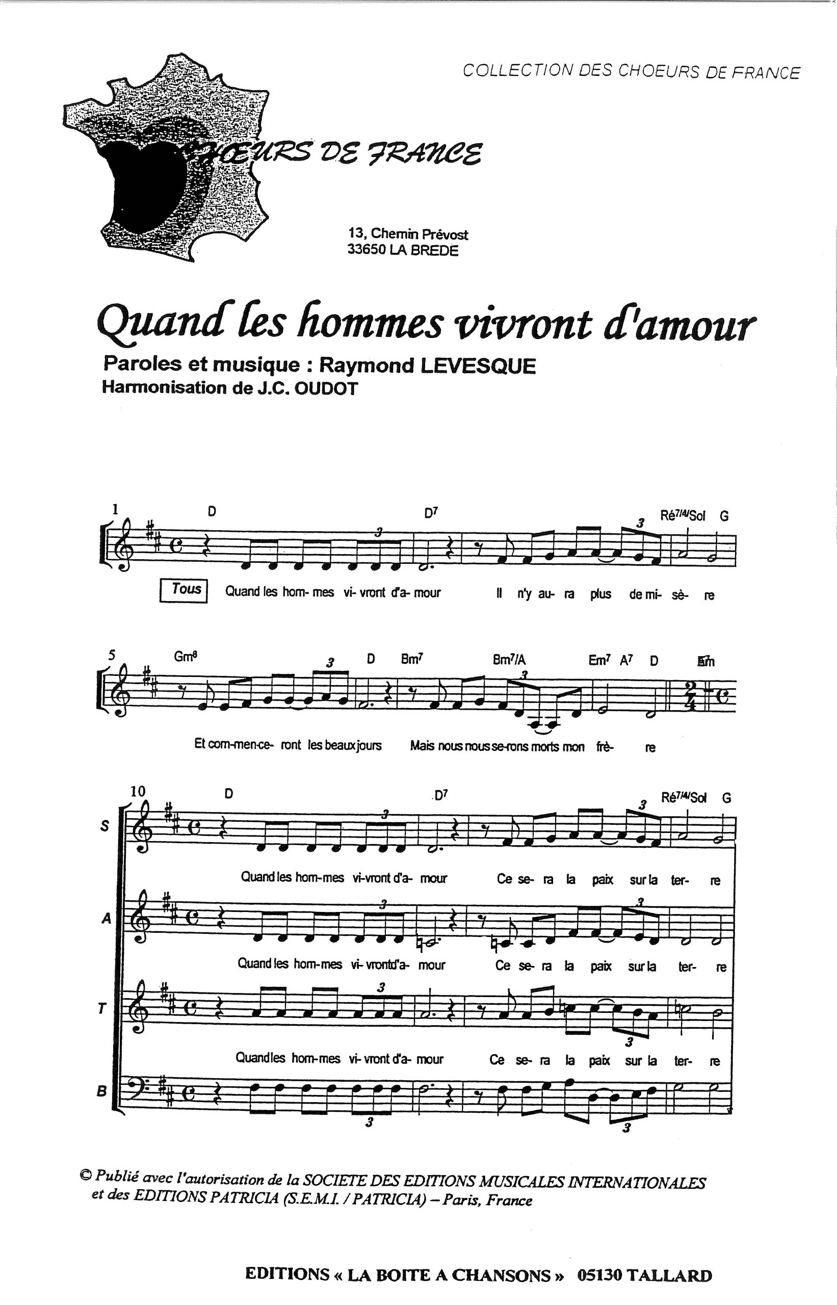Paroles et musique de LEVESQUE Harmonisation : Jean Claude OUDOT