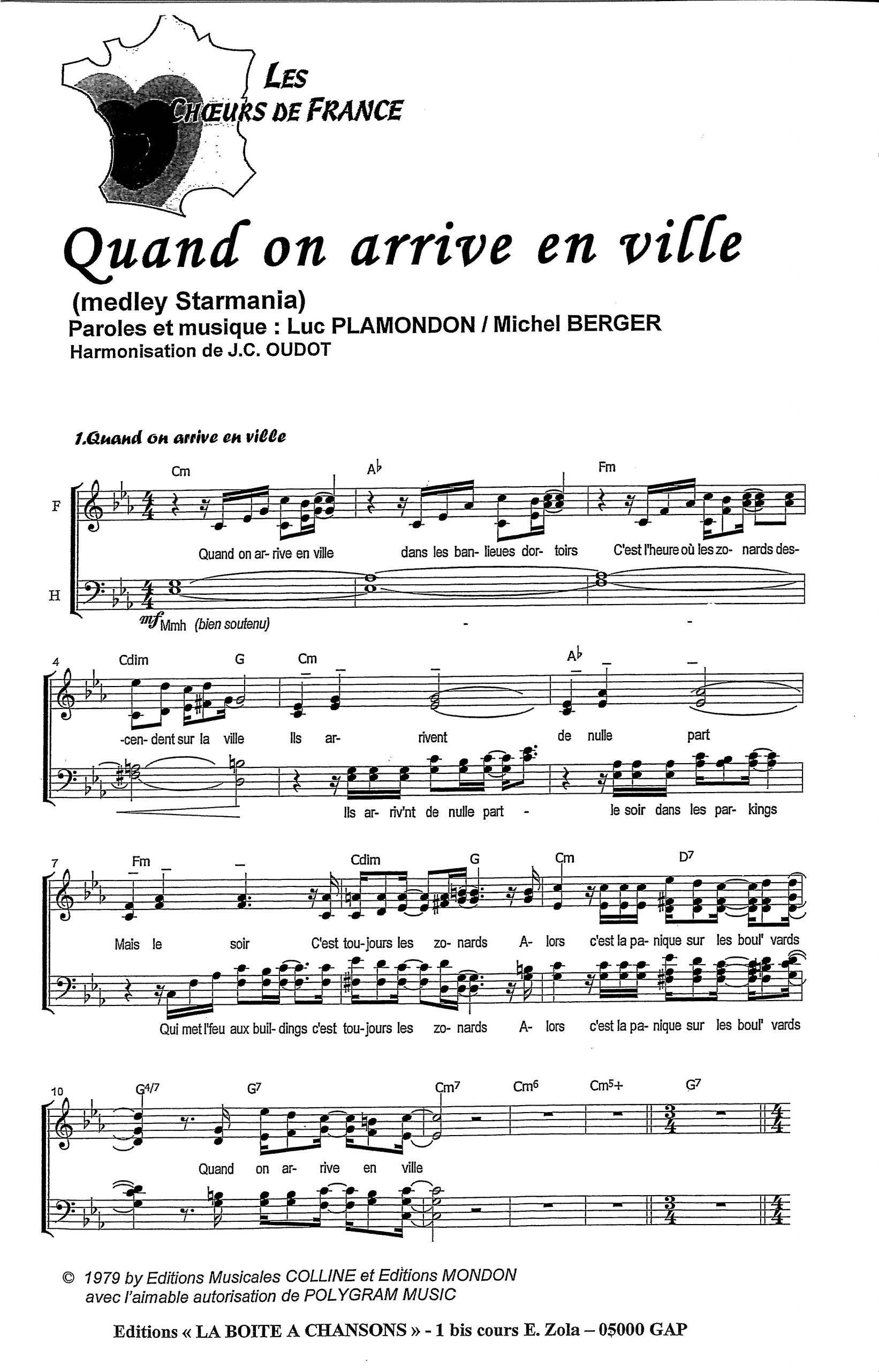 Paroles et musique de PLAMONDON/BERGER Harmonisation : Jean Claude OUDOT