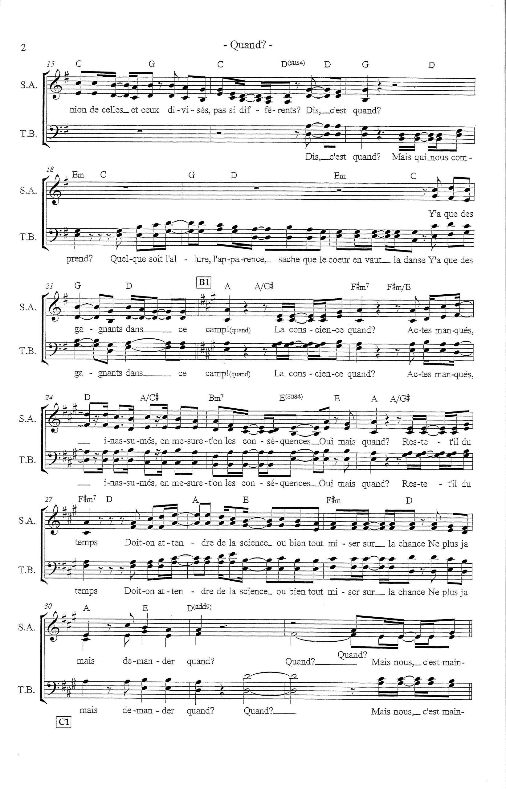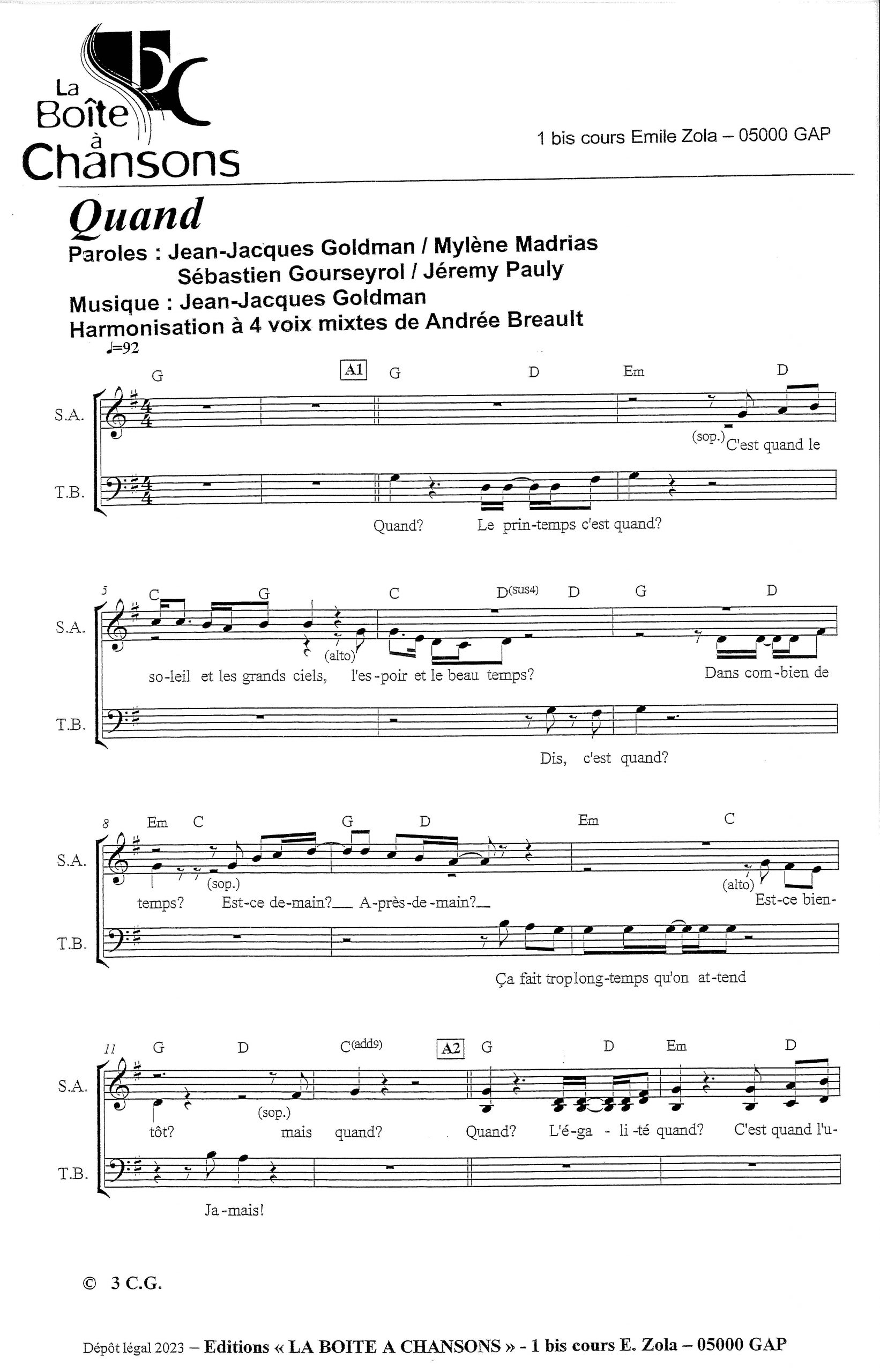 Paroles et musique : J.J. Goldman / M. Madrias / S. Gourseyrol / J. Pauly Harmonisation : Andrée Breault