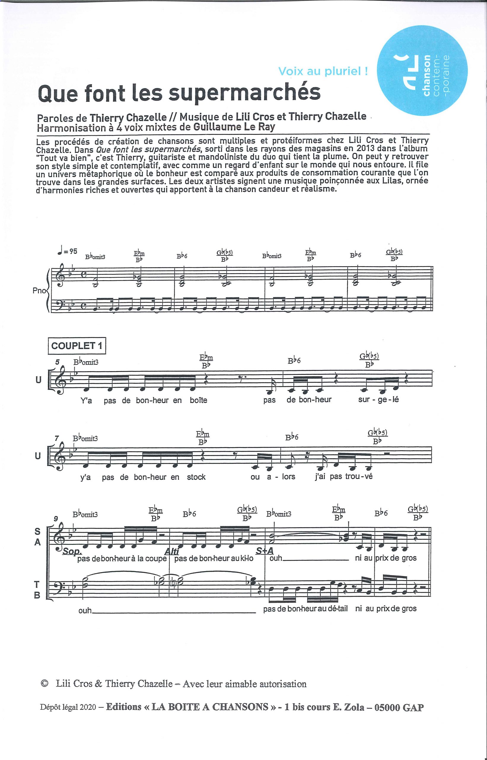 Paroles et musique : T. Chazelle / L. Cros Harmonisation : Guillaume Le Ray