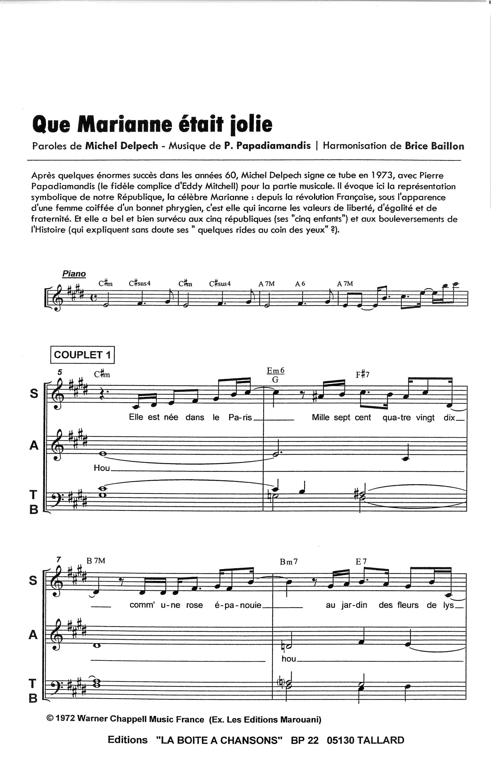 Paroles et musique de DELPECH / PAPADIAMANDIS Harmonisation : Brice BAILLON