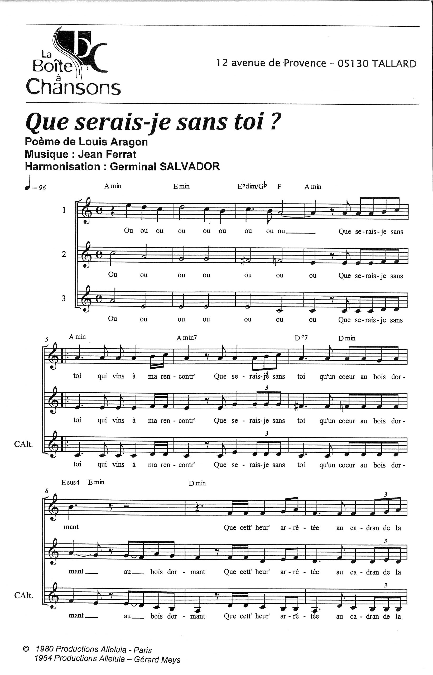 Paroles et musique de ARAGON/FERRAT Harmonisation : Germinal SALVADOR