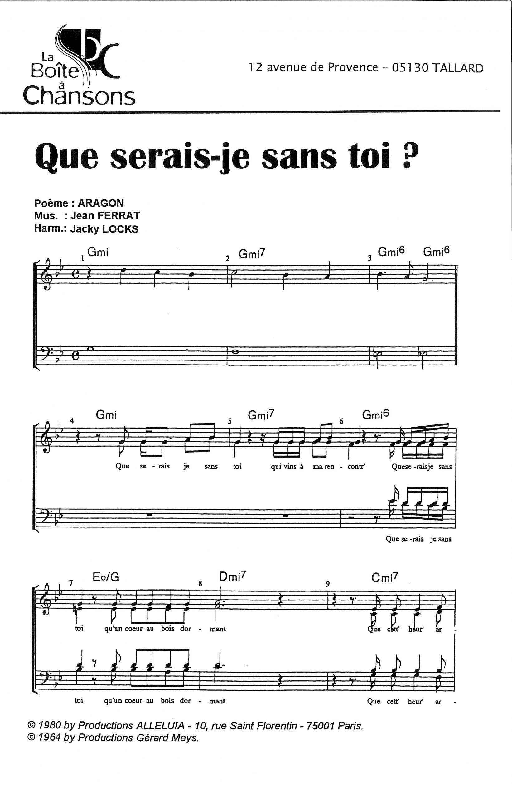 Paroles et musique de ARAGON/FERRAT Harmonisation : Jacky LOCKS