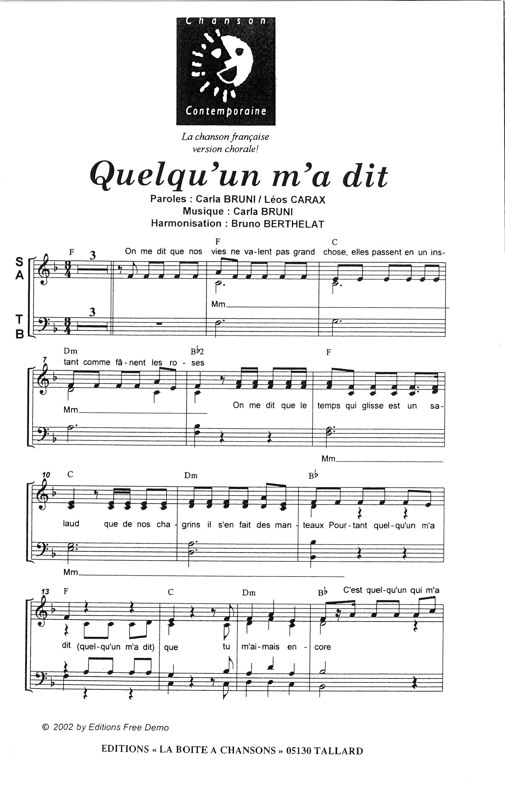 Paroles et musique de BRUNI Harmonisation : Bruno BERTHELAT