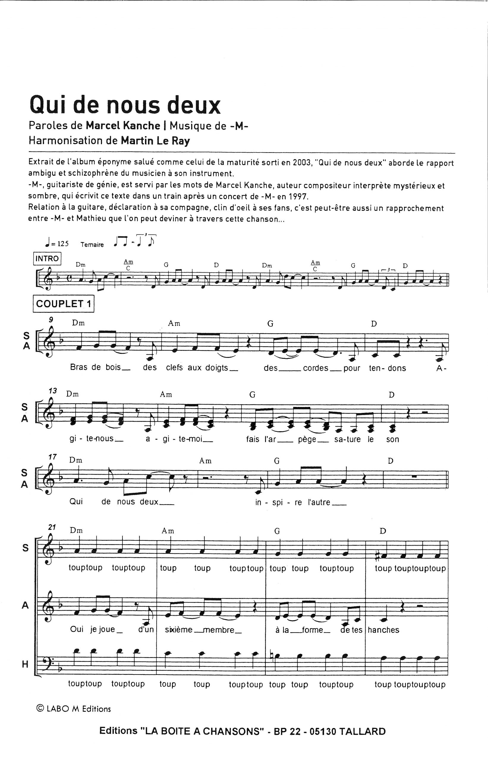 Paroles et musique de M Harmonisation : Martin LE RAY