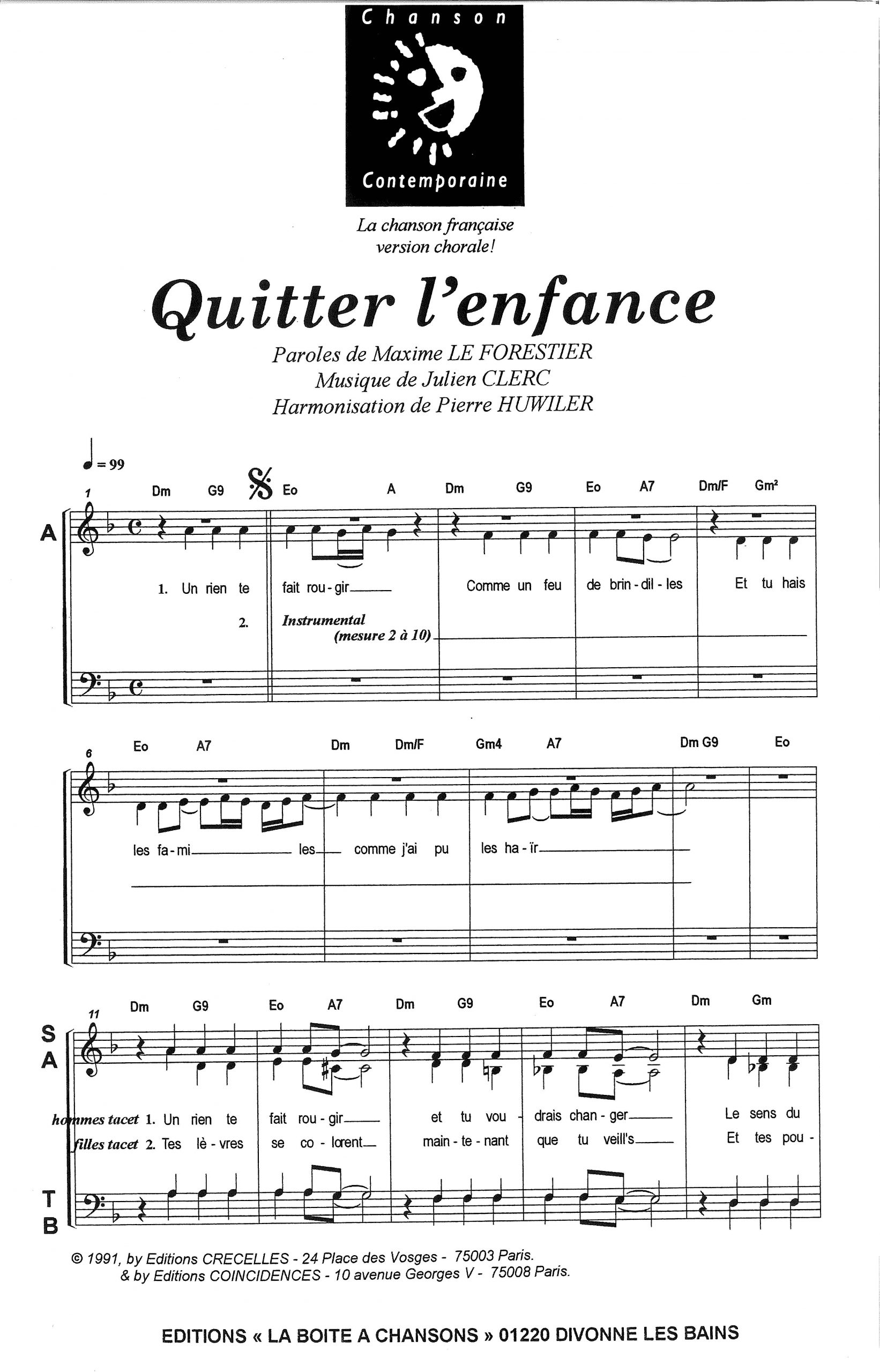 Paroles et musique de LE FORESTIER/CLERC Harmonisation : Pierre HUWILER