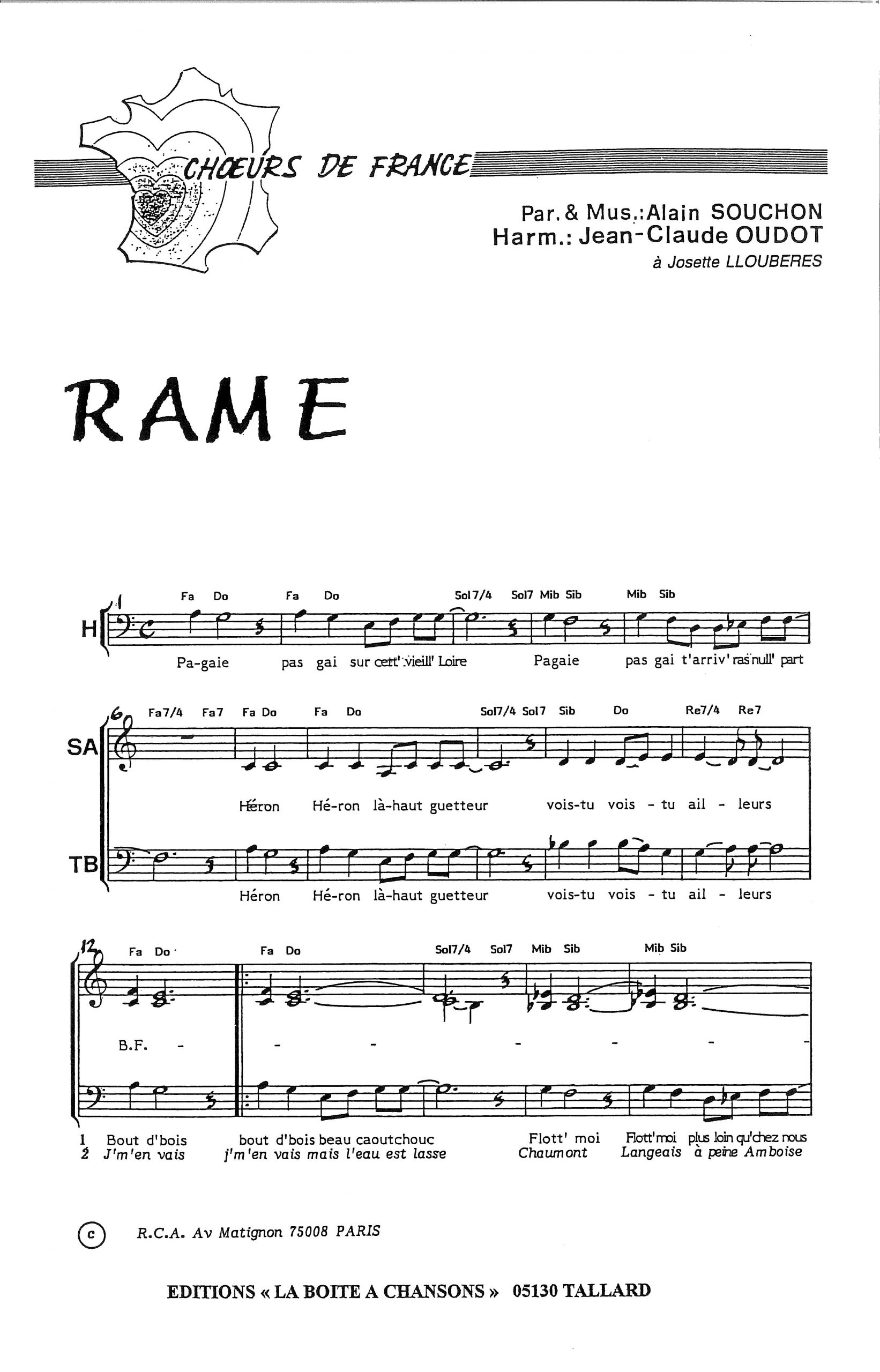 Paroles et musique de SOUCHON Harmonisation : Jean Claude OUDOT