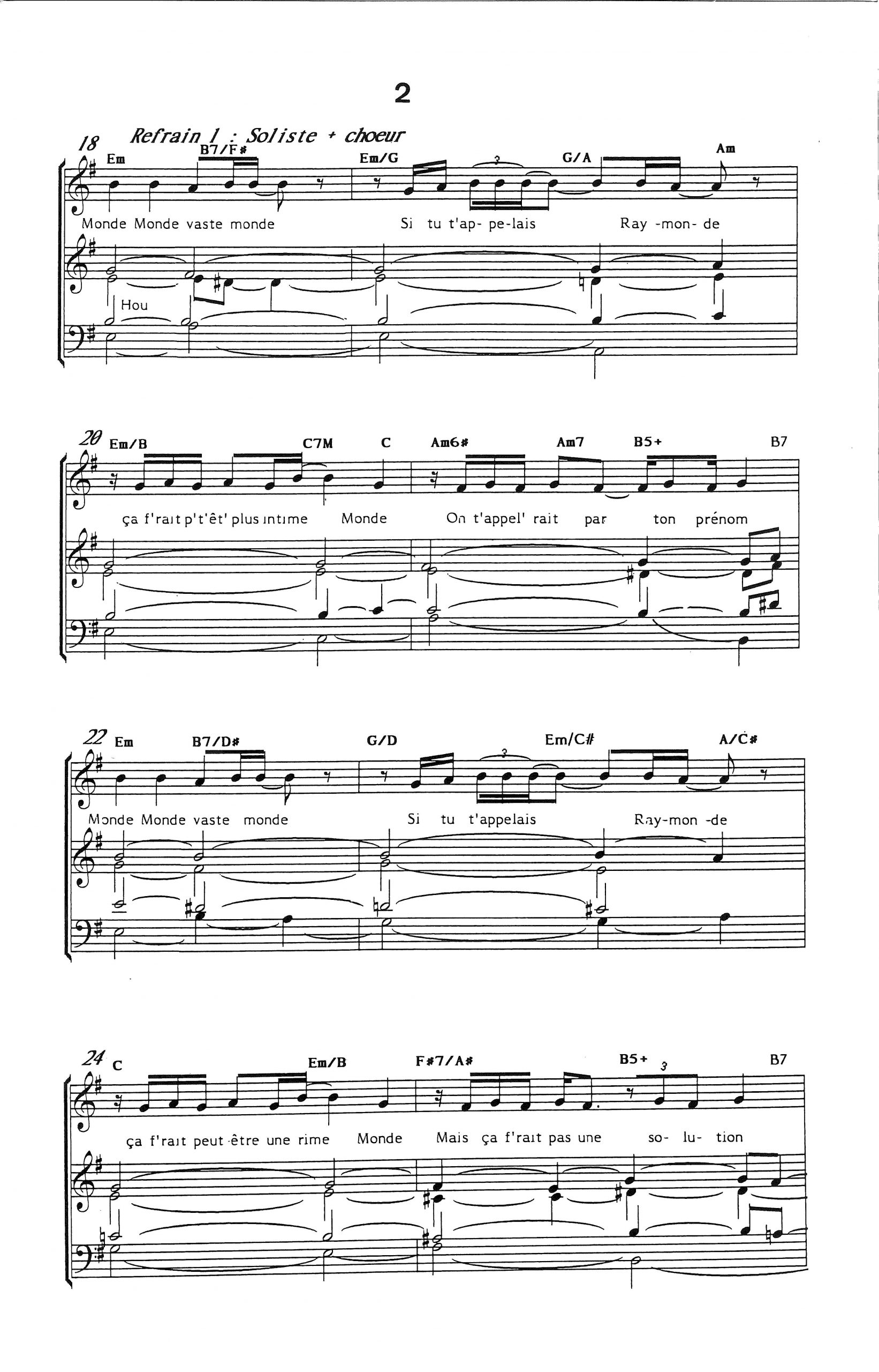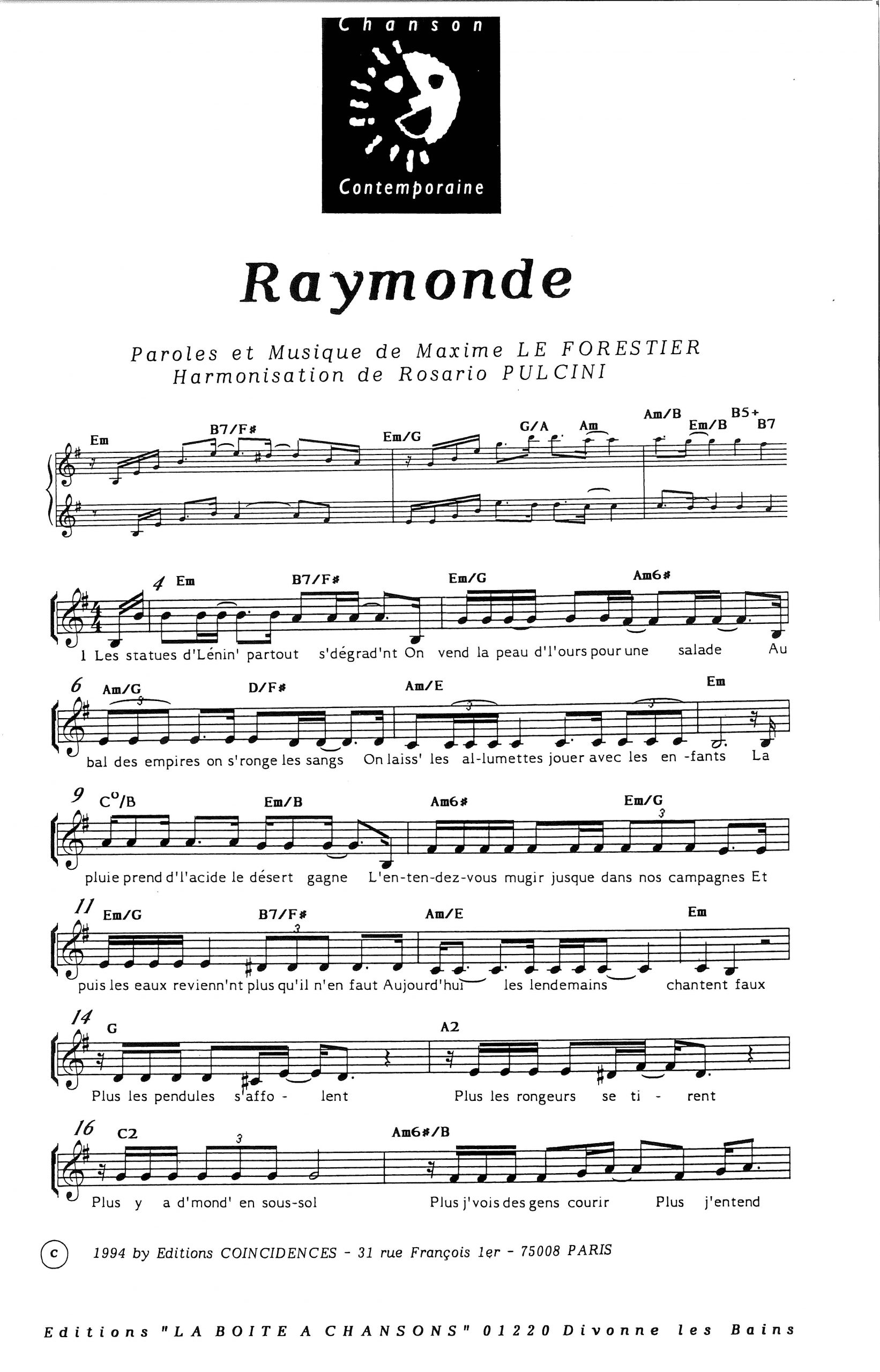 Paroles et musique de LE FORESTIER Harmonisation : Rosario PULCINI