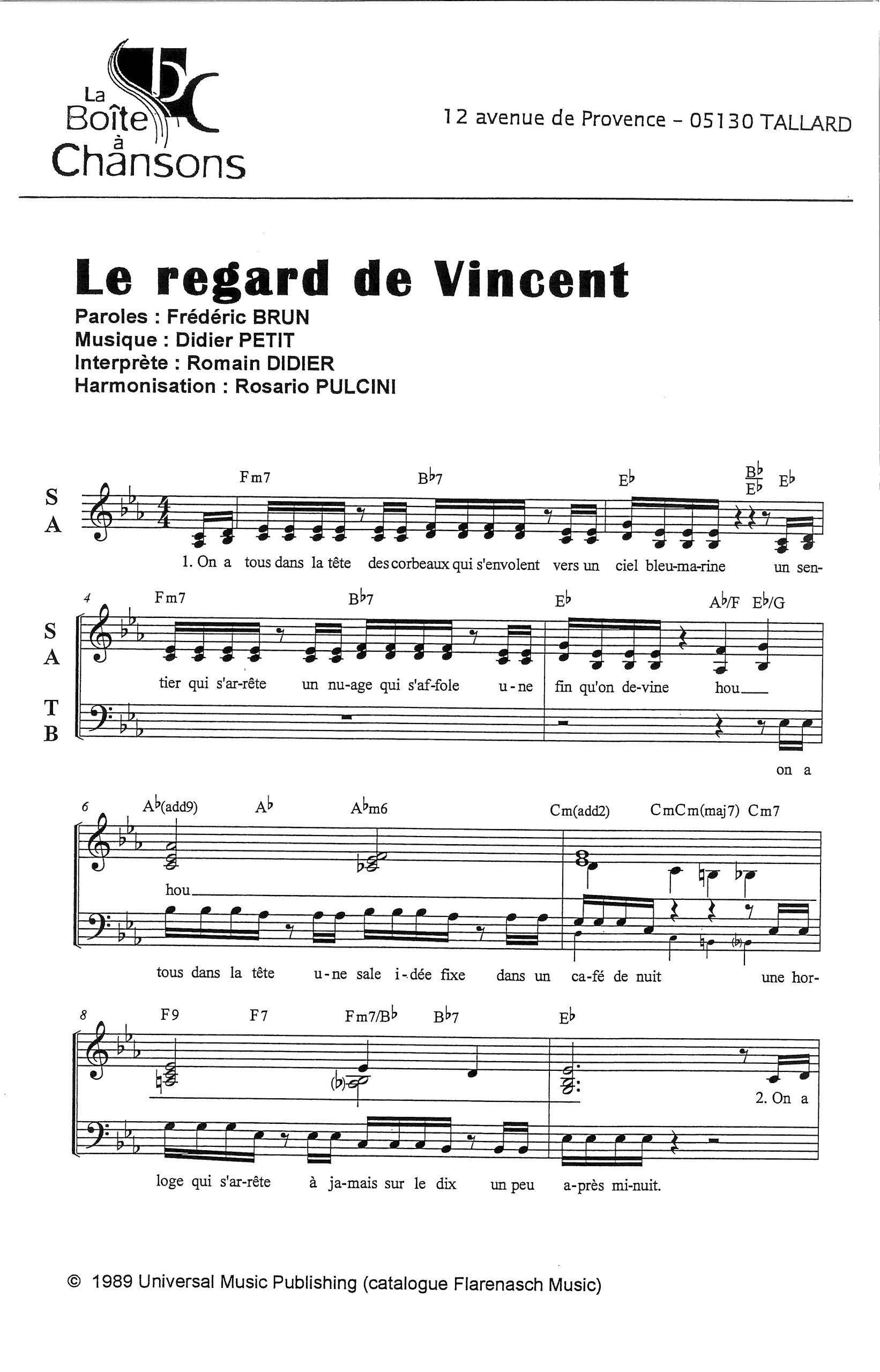 Paroles et musique de BRUN/PETIT Harmonisation : Rosario PULCINI