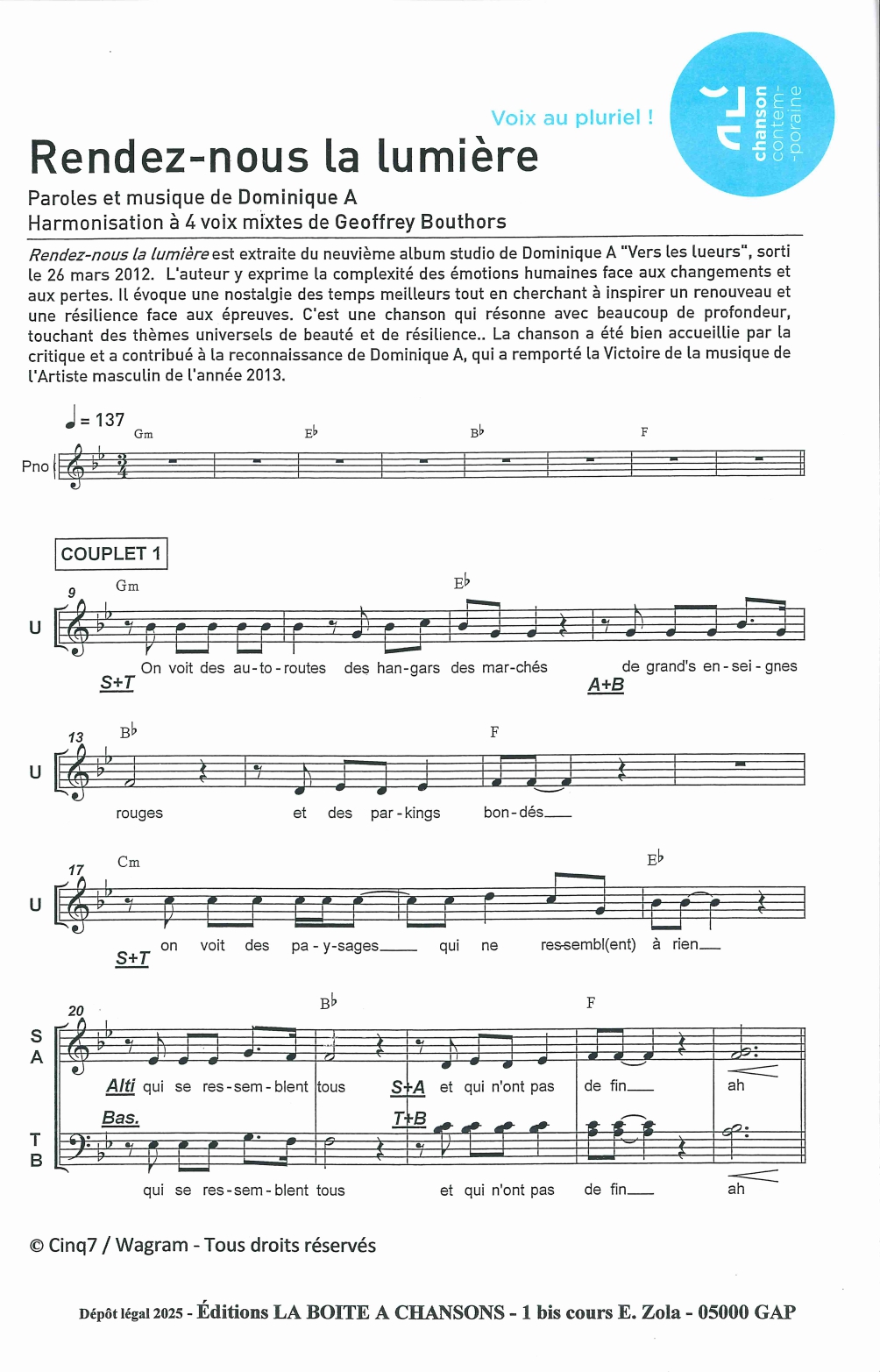 Harmonisation à 4 voix mixtes de Geoffrey Bouthors