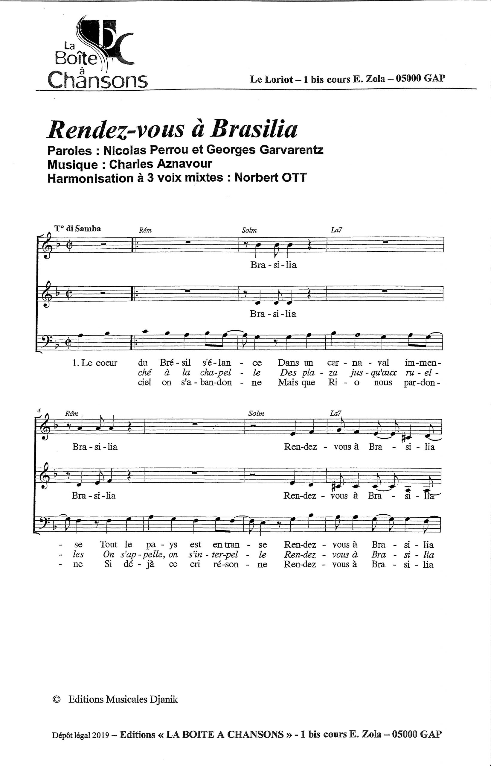Paroles et musique : N. Perrou / G. Garvarentz / C. Aznavour Harmonisation : Norbert Ott