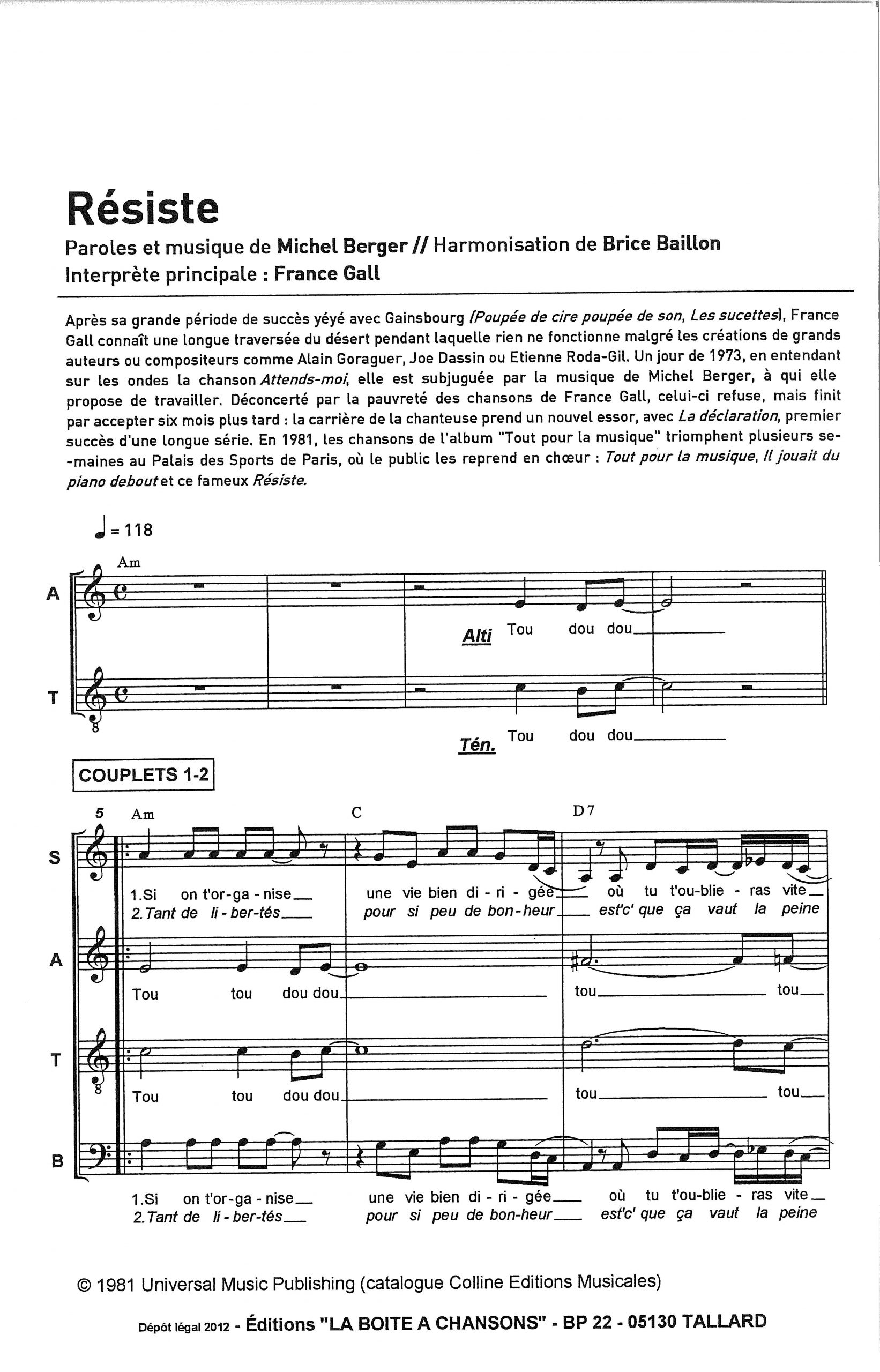 Paroles et musique de BERGER Harmonisation : Brice BAILLON