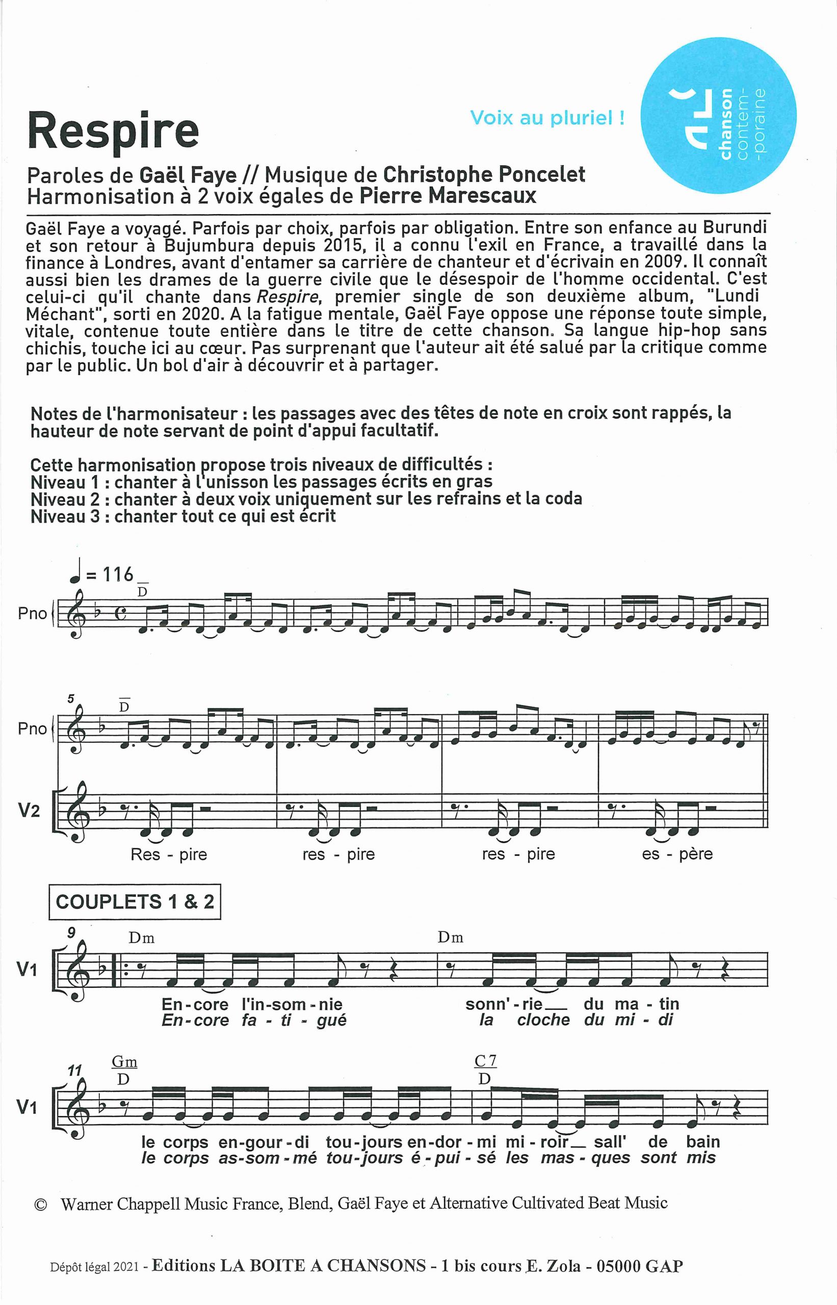 Paroles et musique : G. Faye / C. Poncelet Harmonisation : Pierre Marescaux