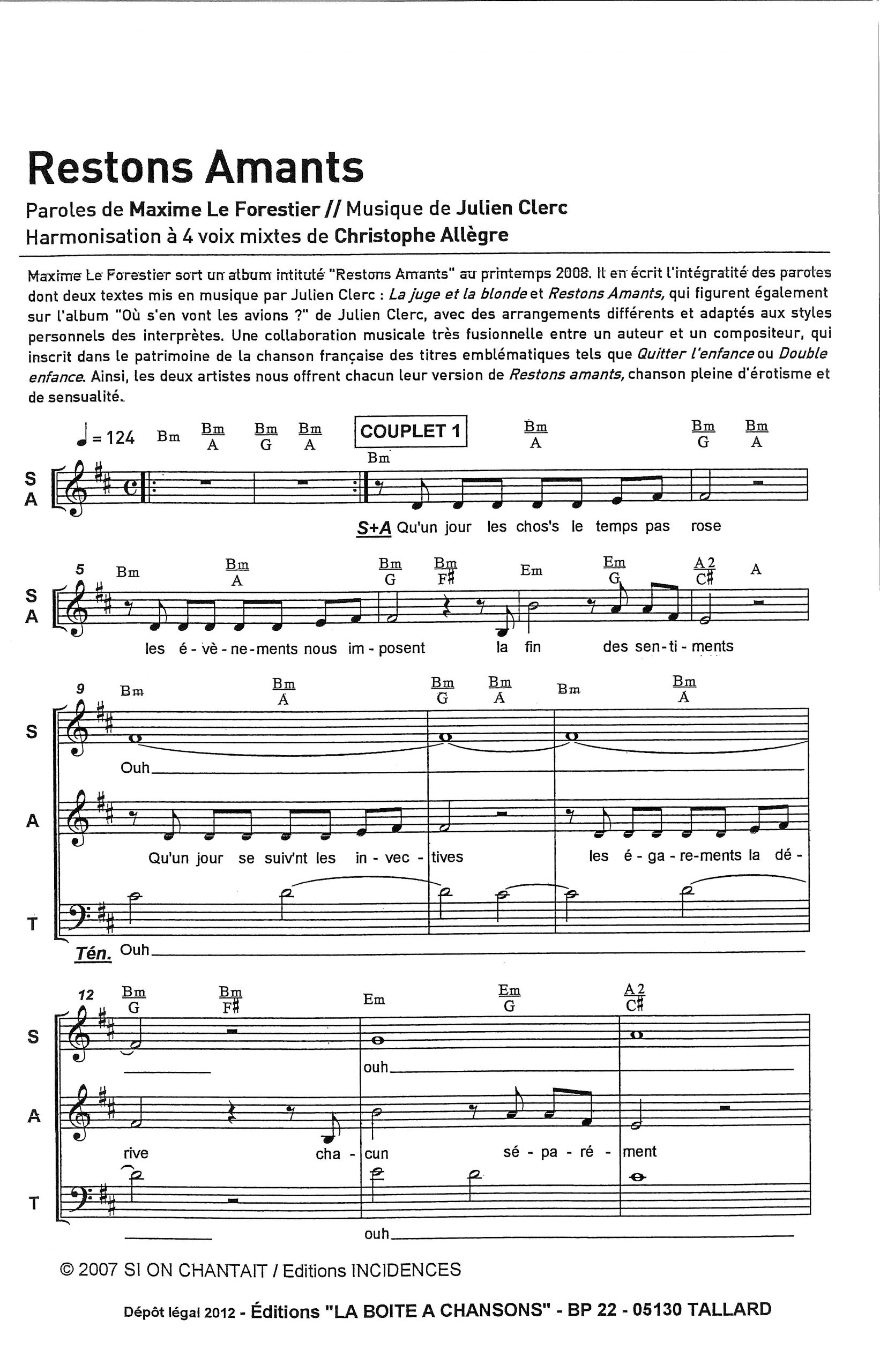 Paroles et musique de LE FORESTIER Harmonisation : Christophe ALLEGRE