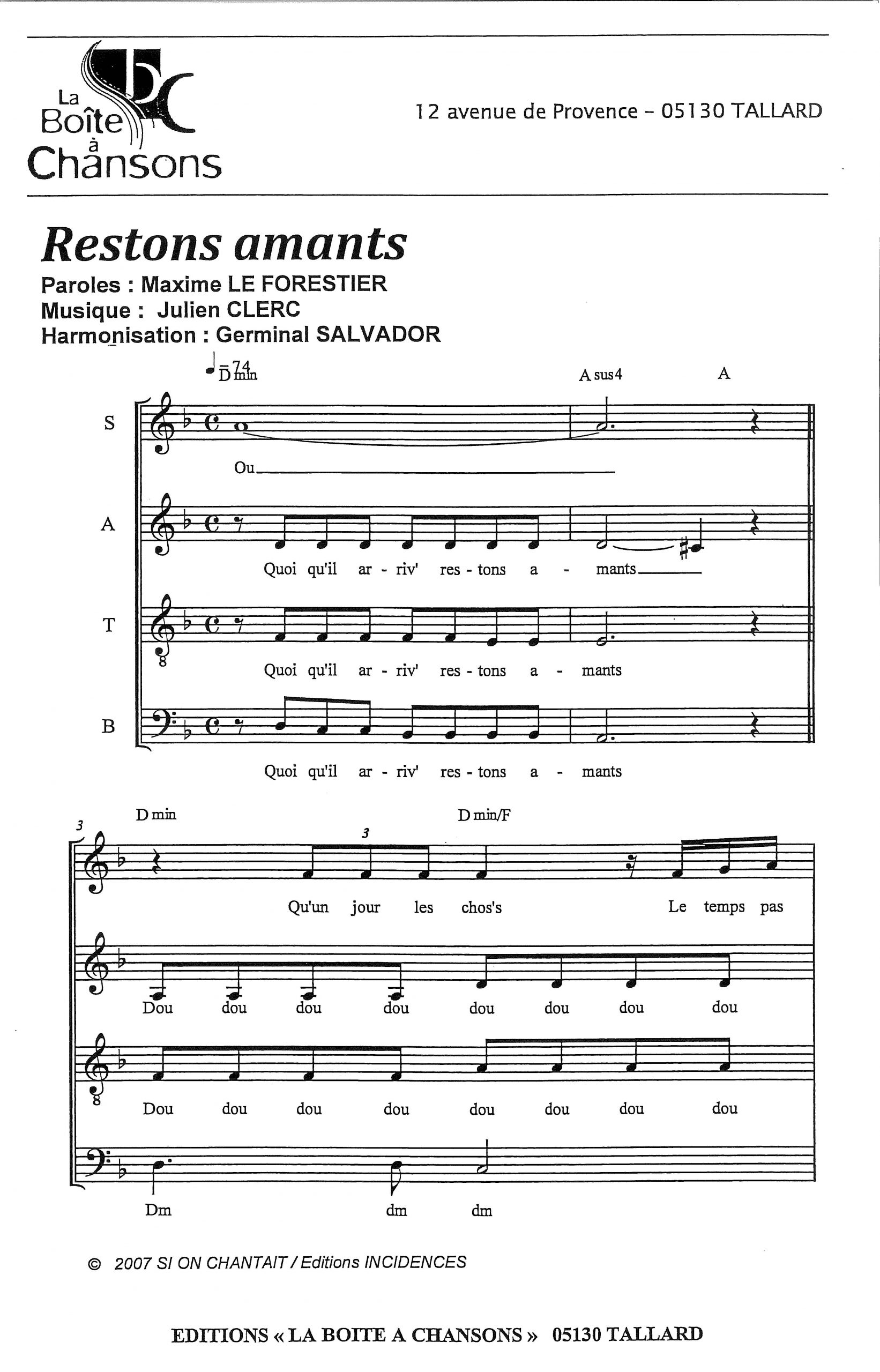 Paroles et musique de LE FORESTIER/CLERC Harmonisation : Germinal SALVADOR