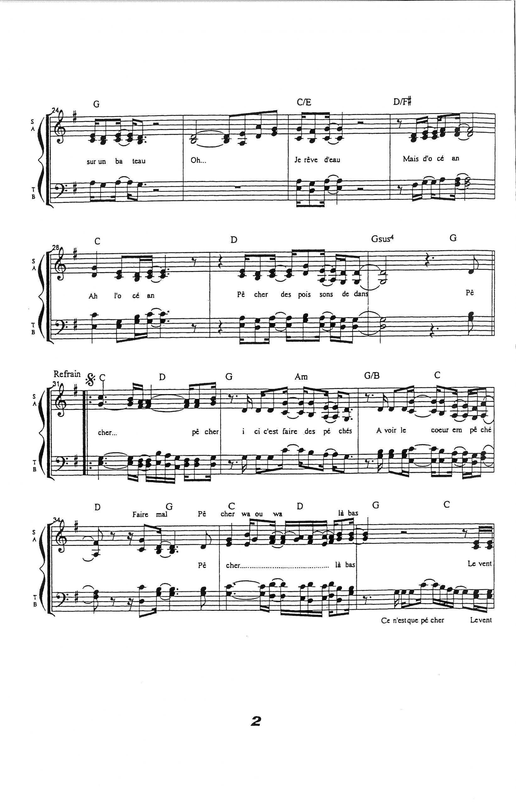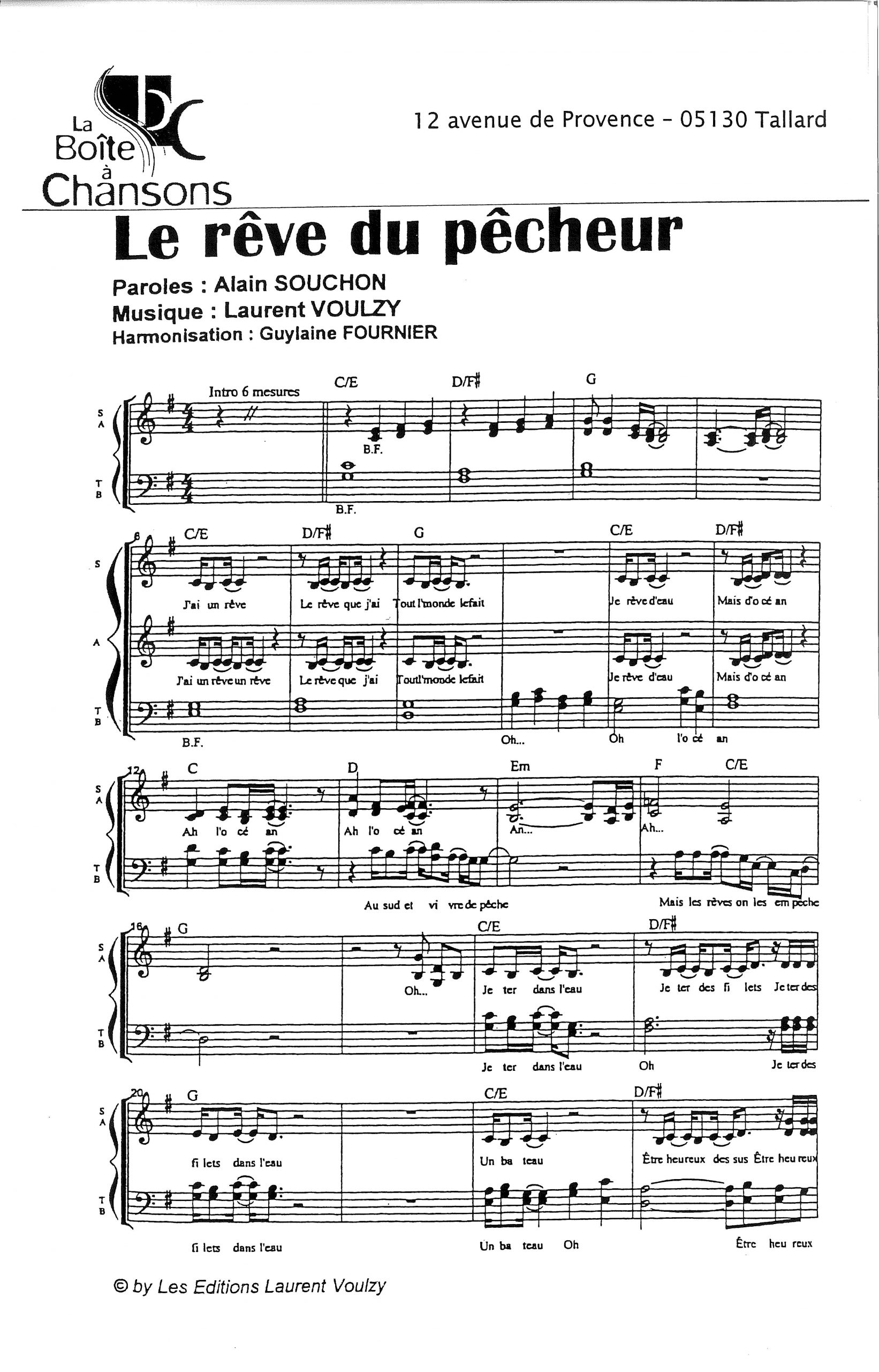 Paroles et musique de SOUCHON/VOULZY Harmonisation : Guylaine FOURNIER