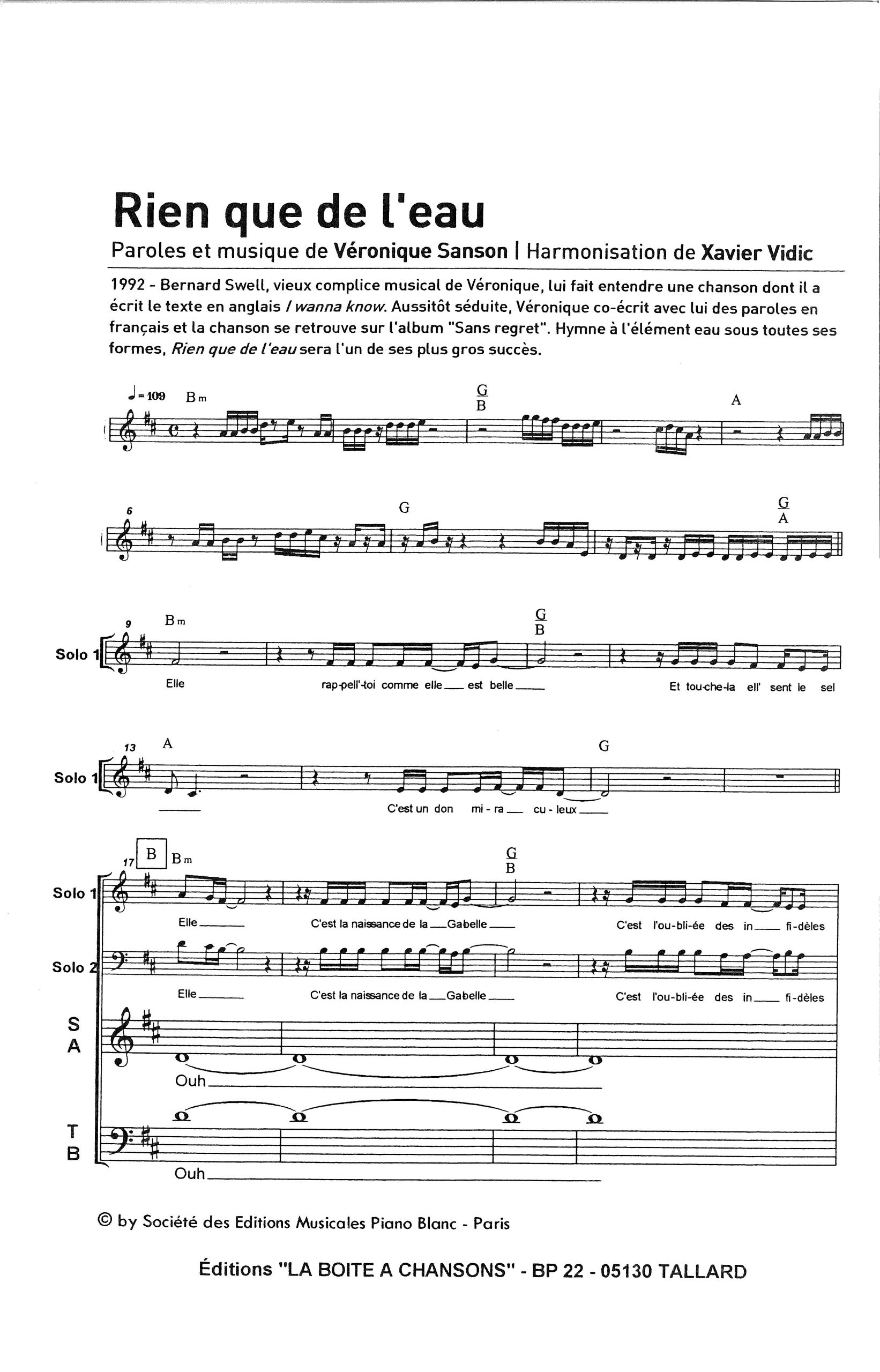 Paroles et musique de SANSON Harmonisation : Xavier VIDIC