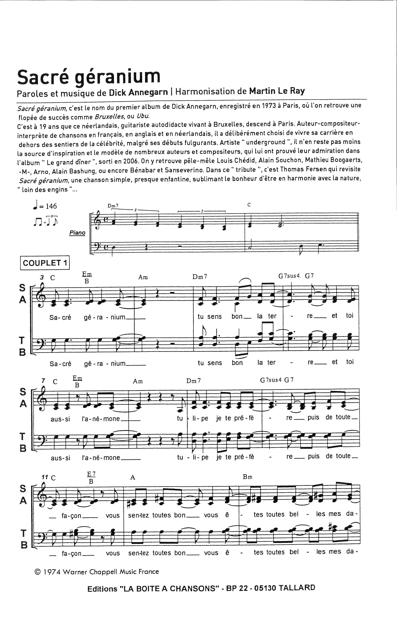 Paroles et musique de DICK ANNEGARN Harmonisation : Martin LE RAY
