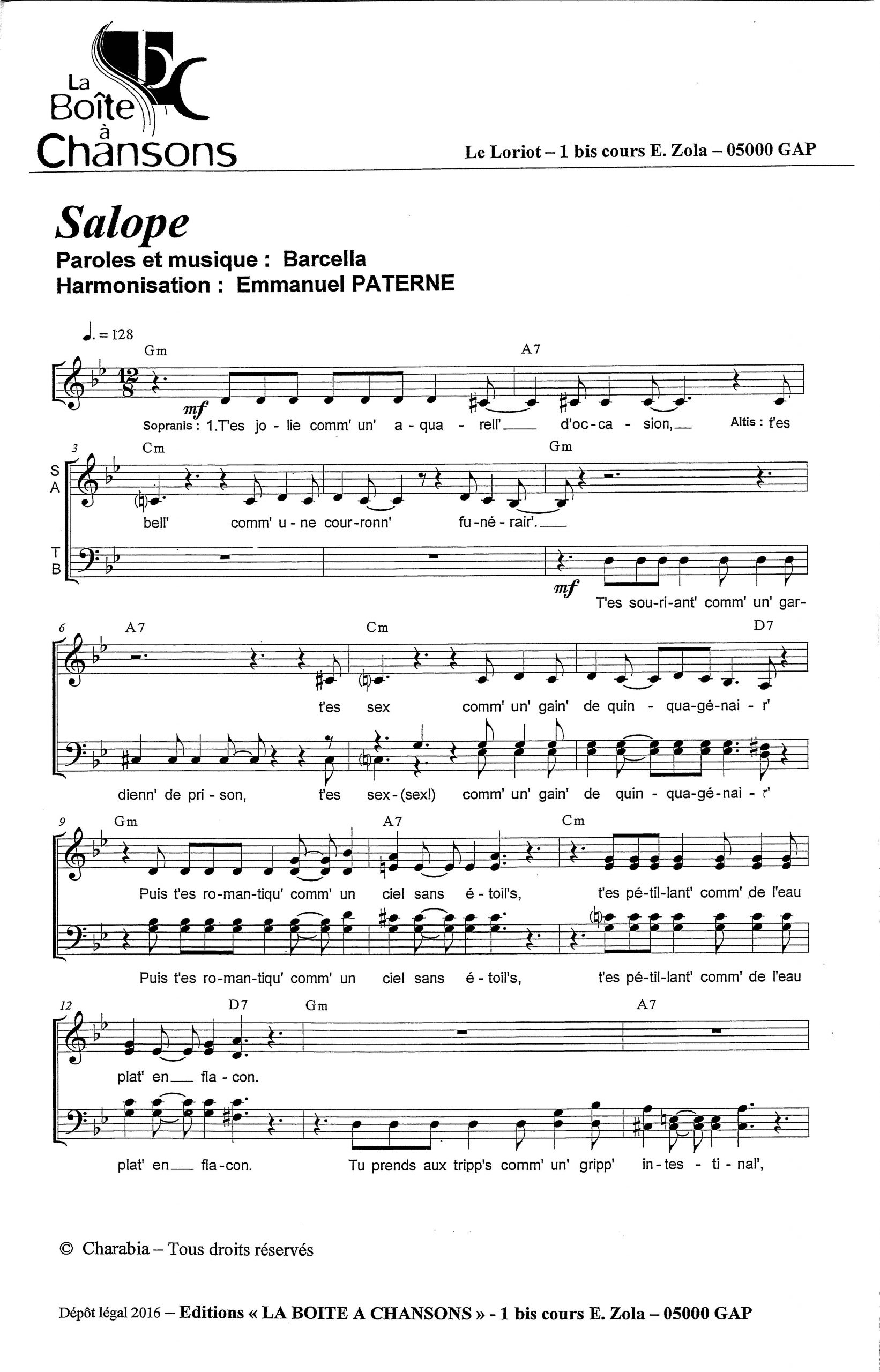 Paroles et musique : Barcella Harmonisation : Emmanuel PATERNE