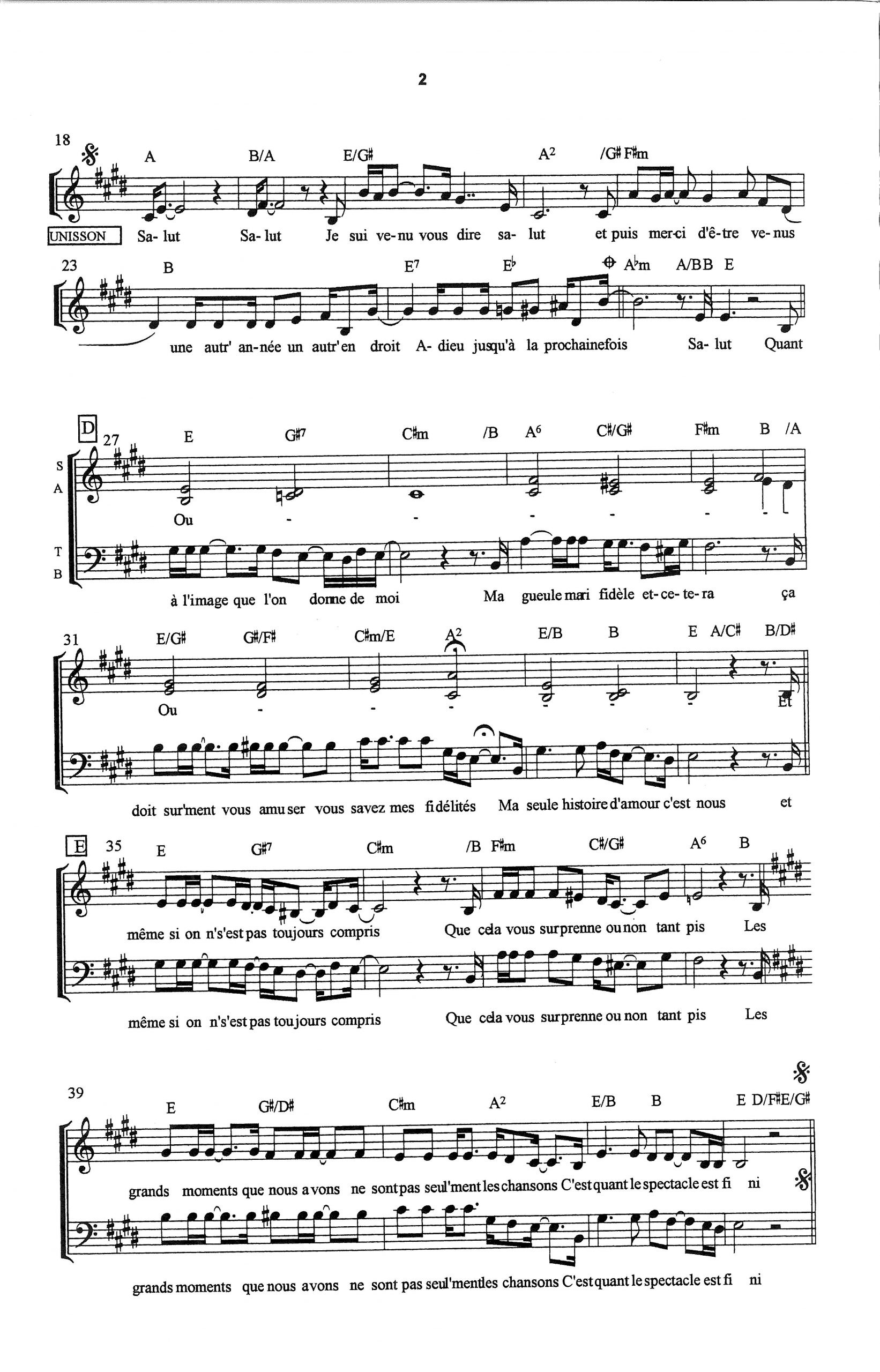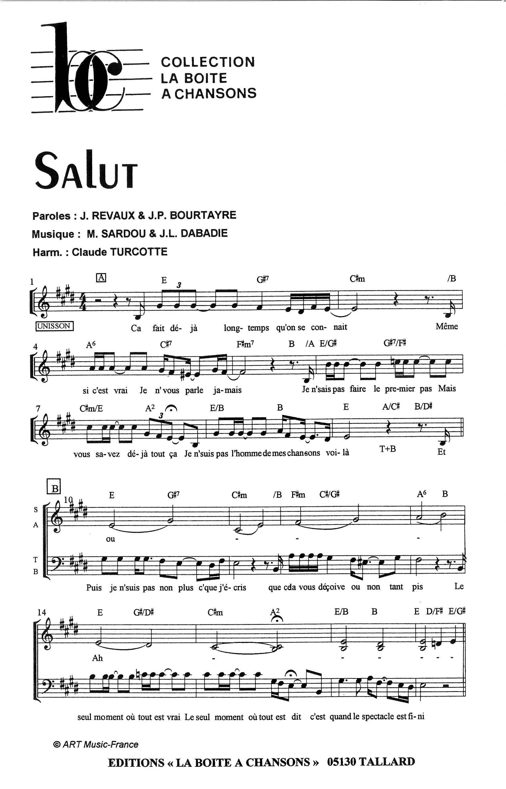 Paroles et musique de REVAU/BOURT/SARDOU/DABAD Harmonisation : Claude TURCOTTE