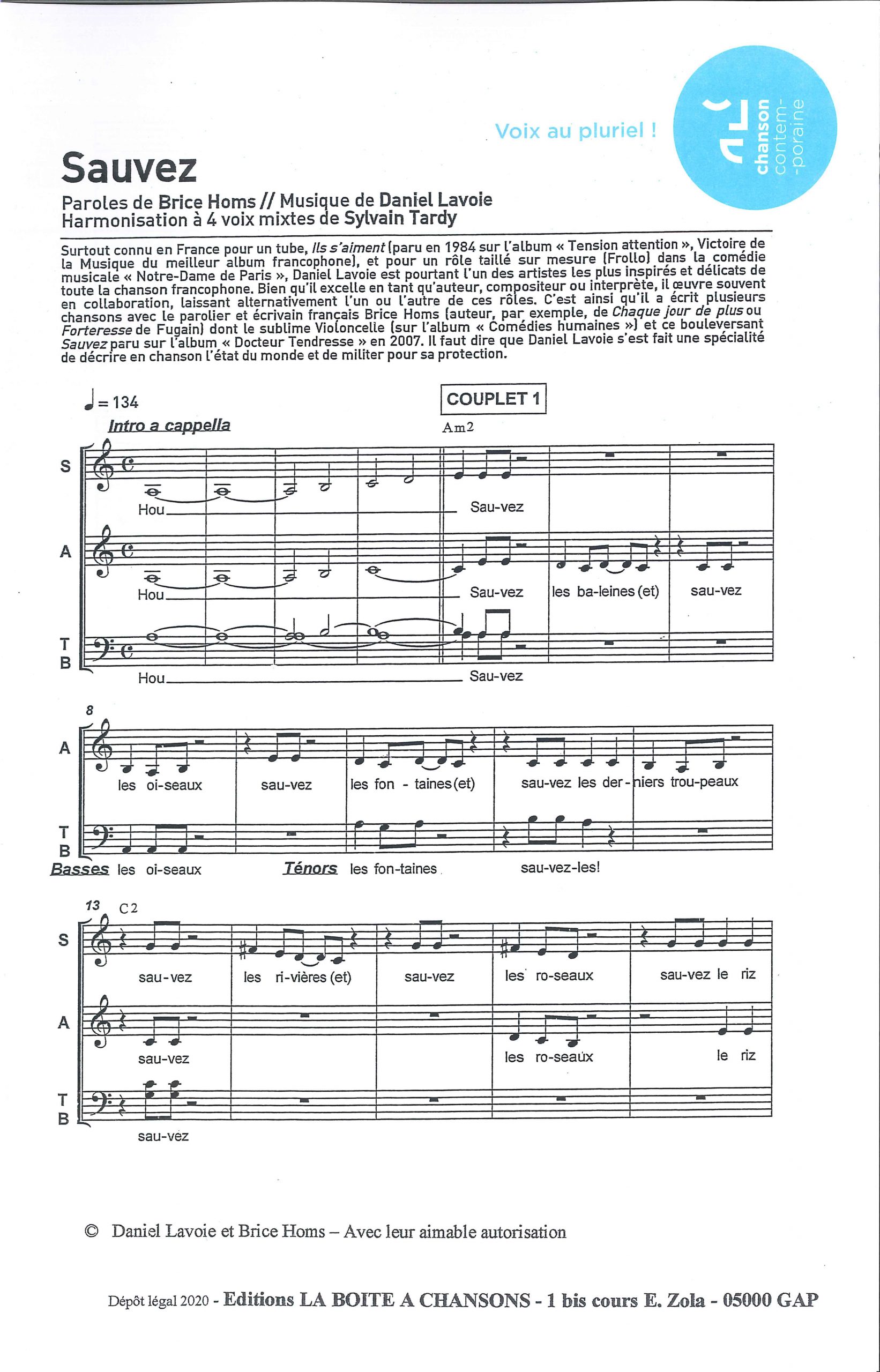 Paroles et musique : B. Homs / D. Lavoie Harmonisation : Sylvain Tardy