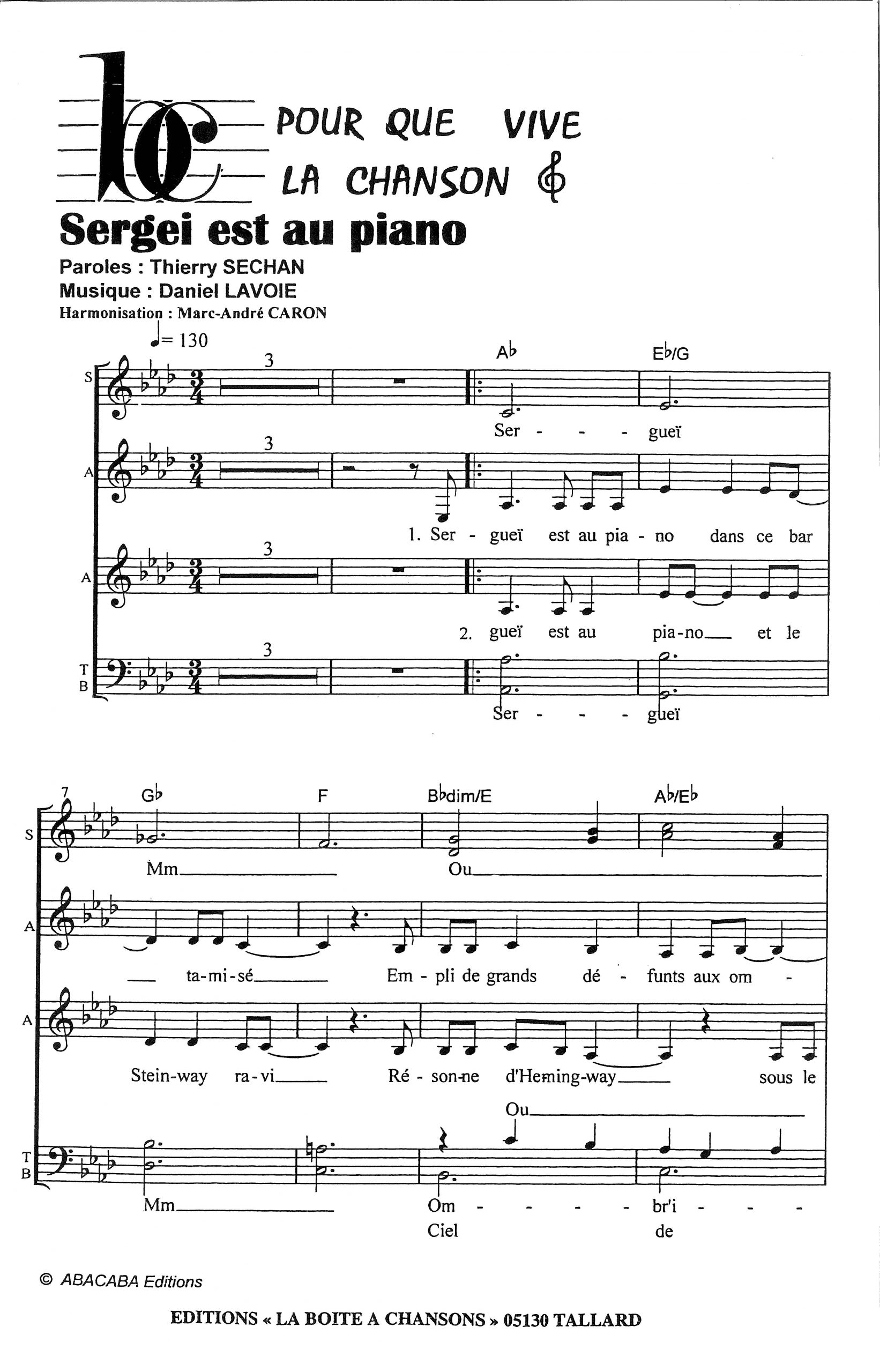 Paroles et musique de SECHAN / LAVOIE Harmonisation : Marc André CARON