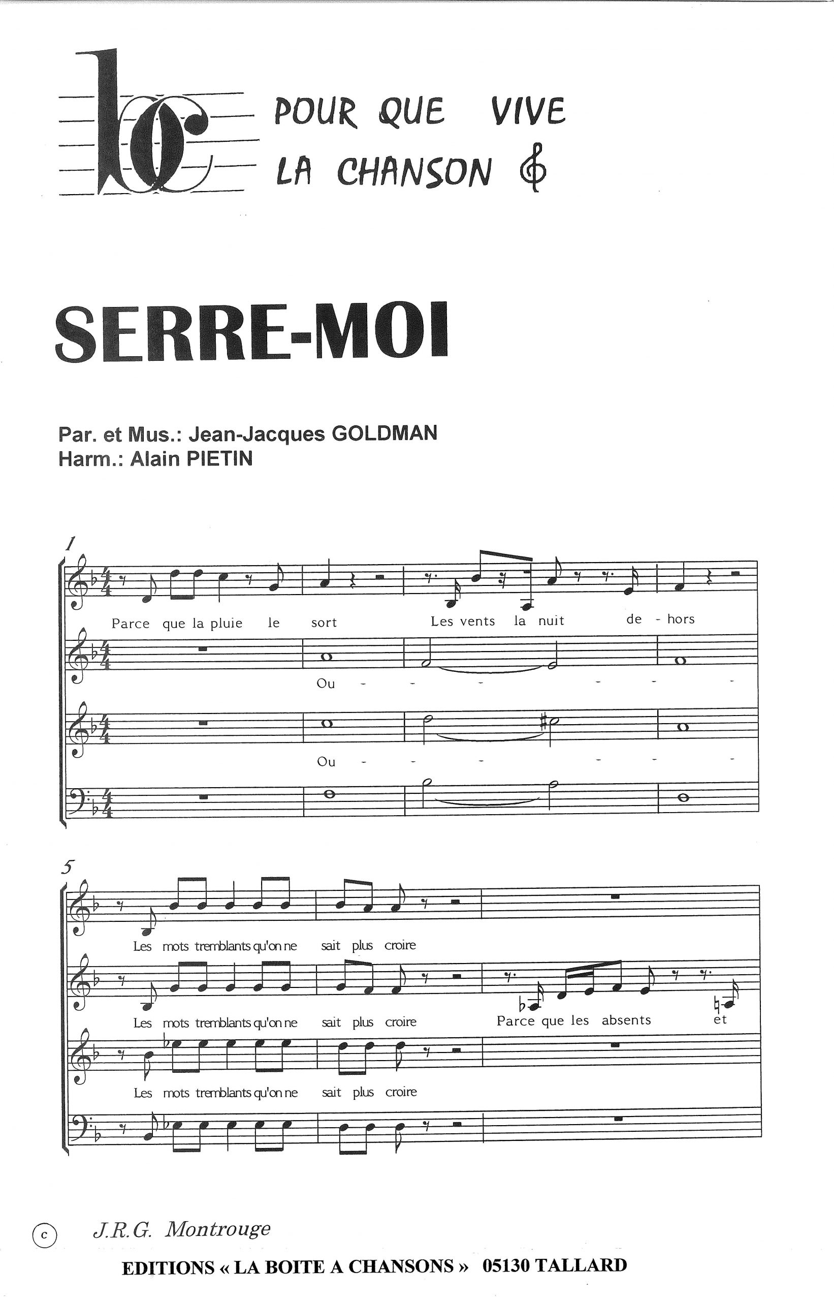 Paroles et musique de GOLDMAN Harmonisation : PIETIN
