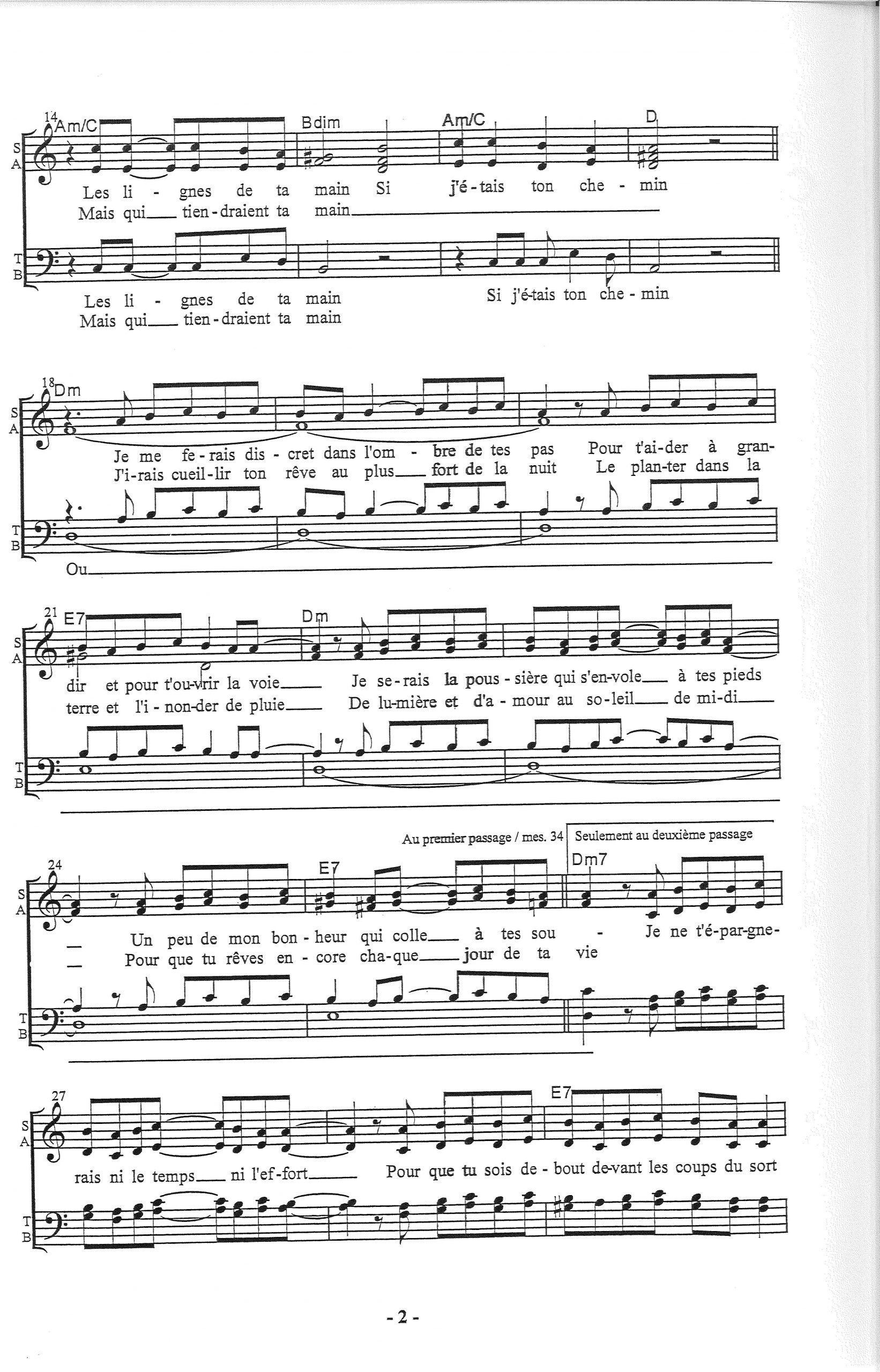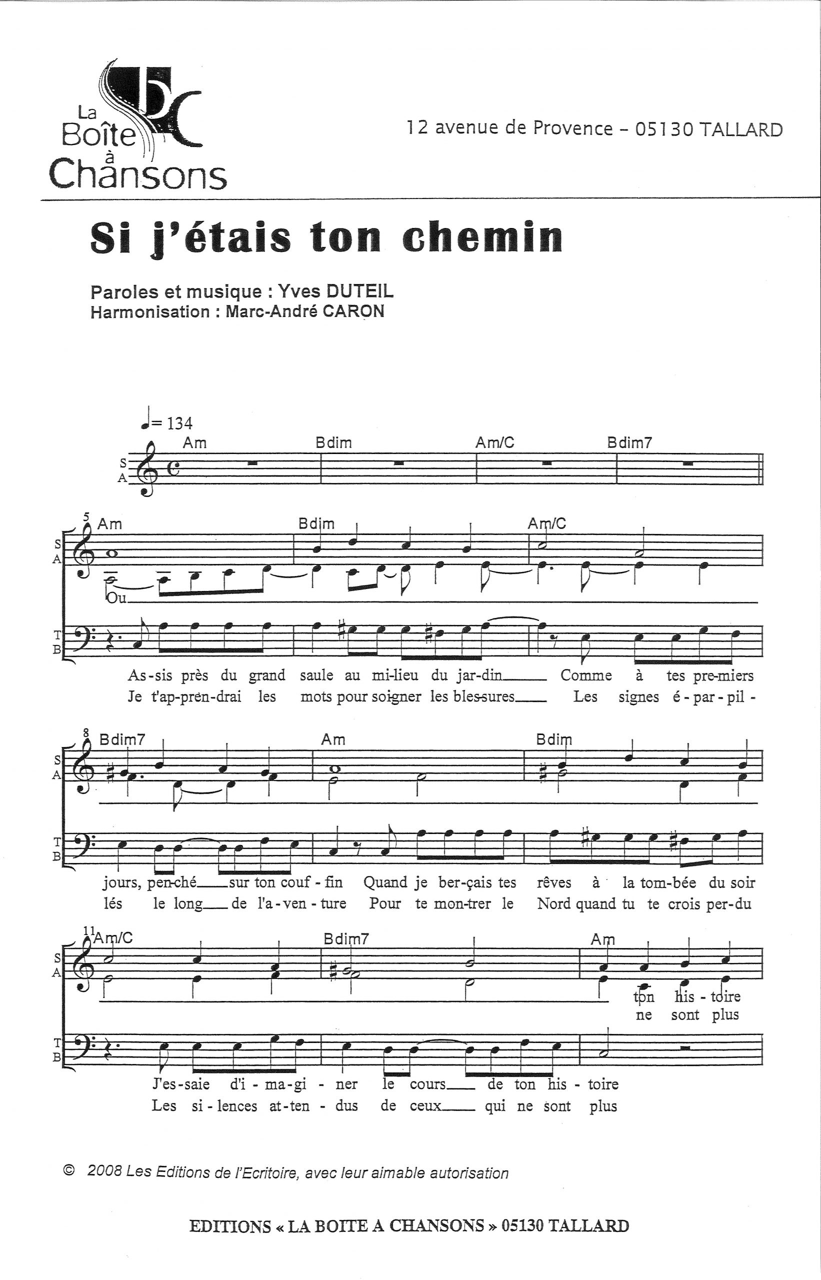 Paroles et musique de DUTEIL Harmonisation : Marc André CARON