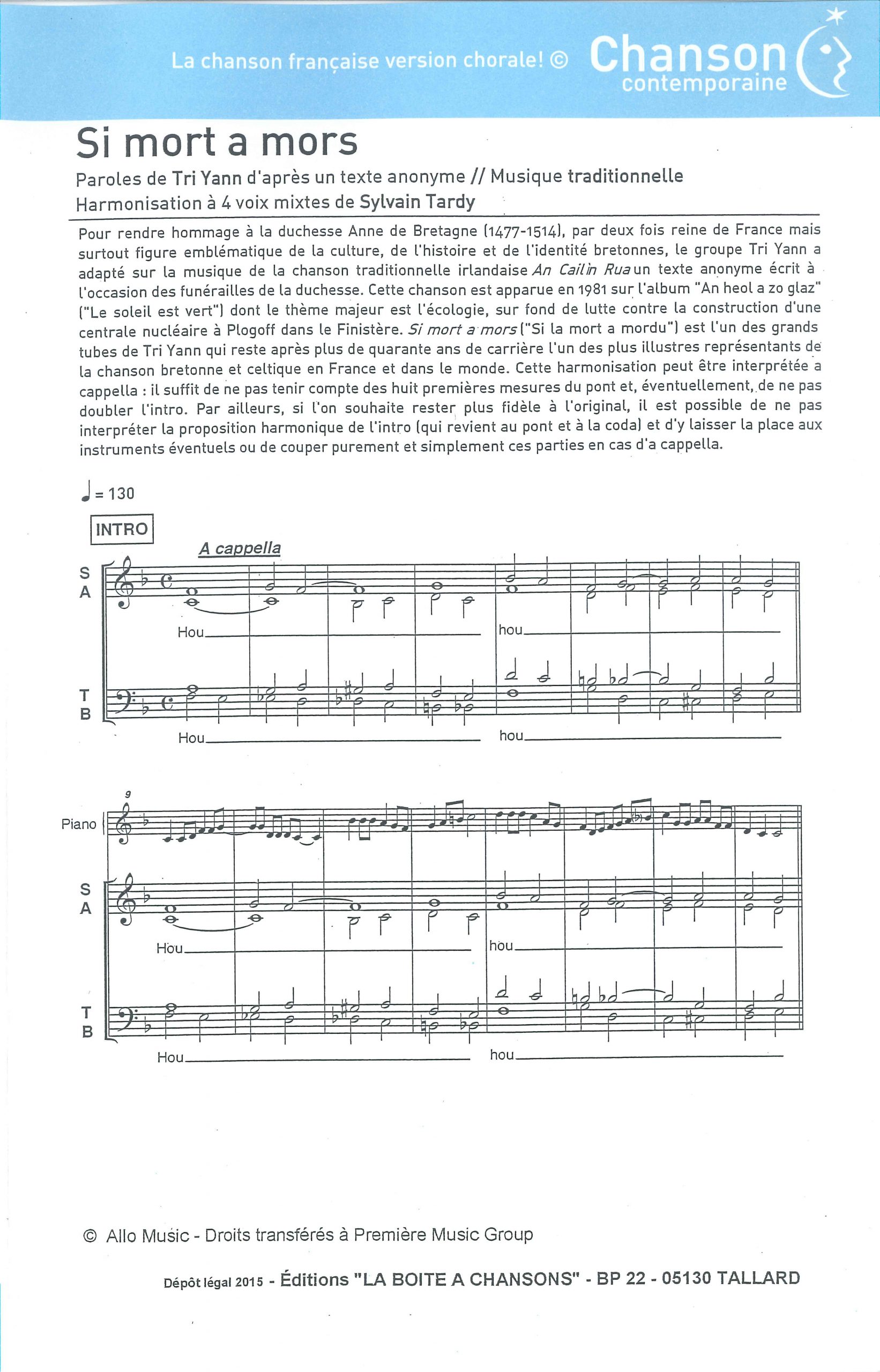 Paroles : Tri Yann / Musique : traditionnel Harmonisation : Sylvain TARDY