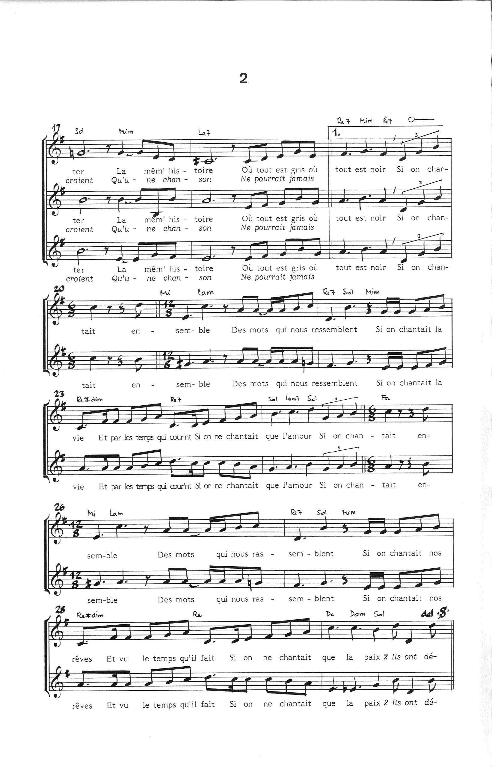 Paroles et musique de LAPOINTE PIERRE Harmonisation : Jean Claude OUDOT/Norbert OTT