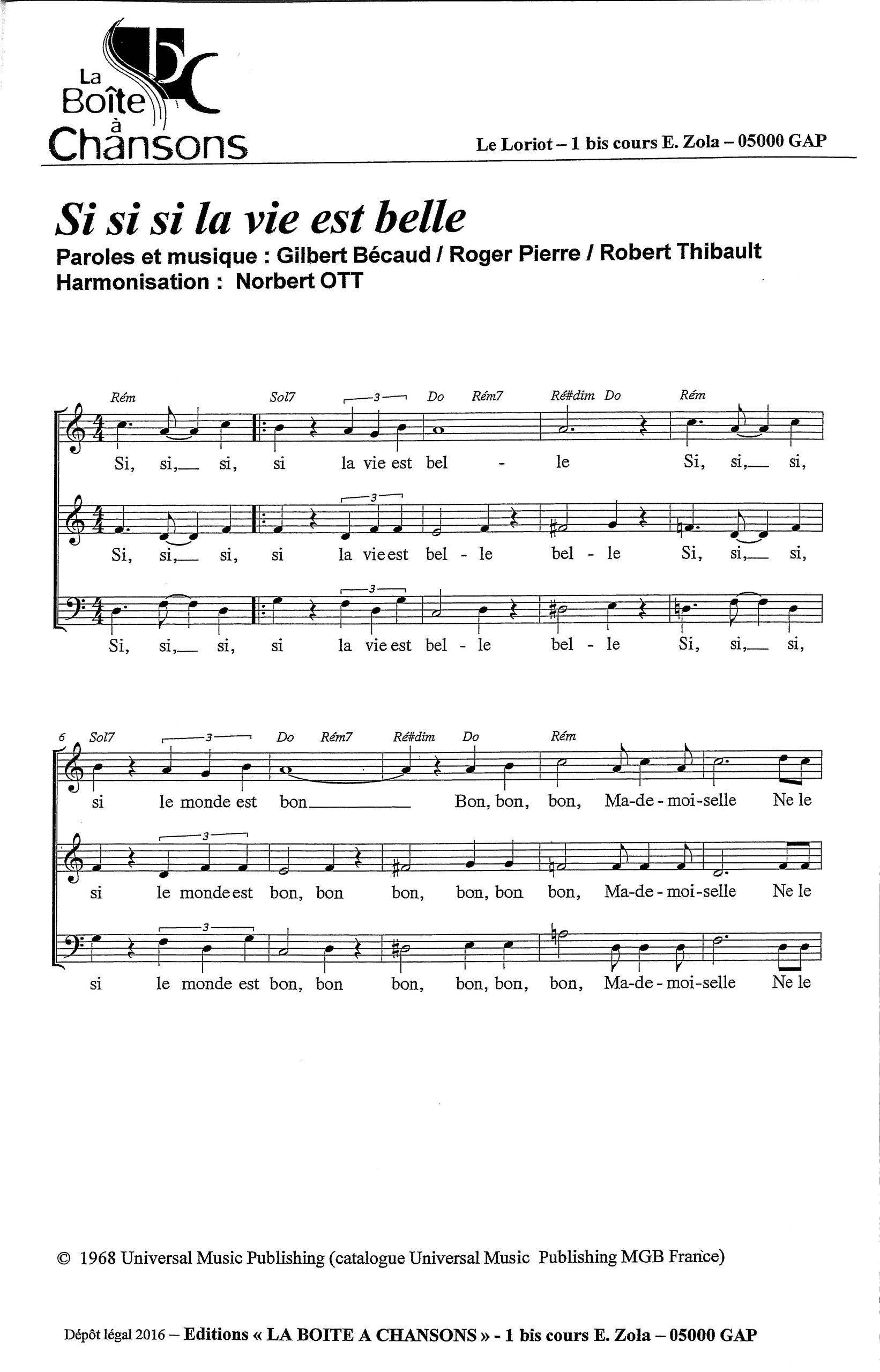 Paroles et musique : G. Becaud / R. Pierre / R. Thibault Harmonisation : Norbert OTT