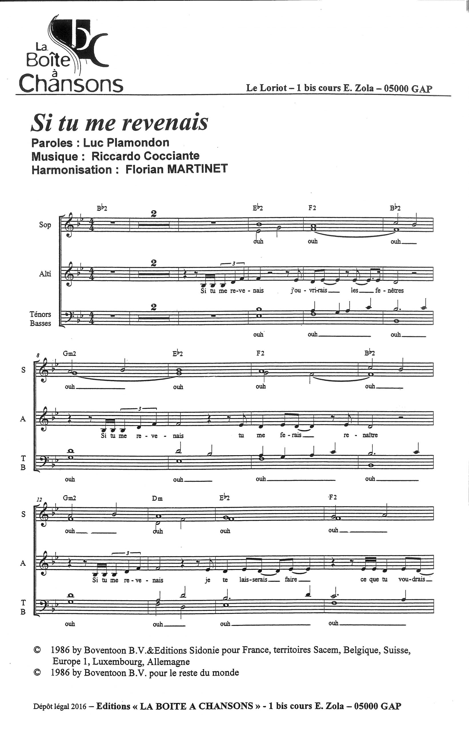 Paroles et musique : L. Plamondon / R. Cocciante Harmonisation : Florian MARTINET