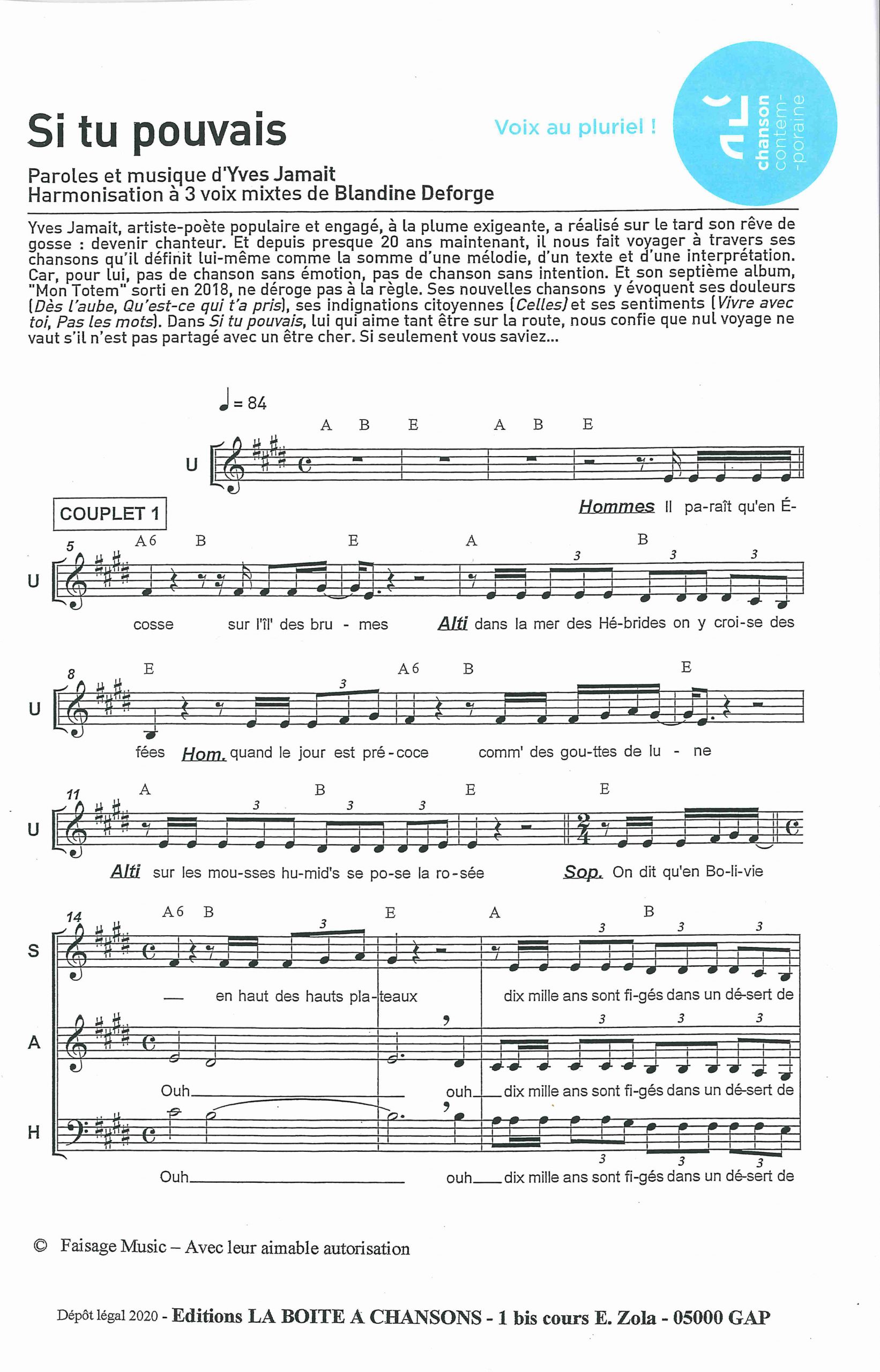 Paroles et musique : Y. Jamait Harmonisation : Blandine Deforge