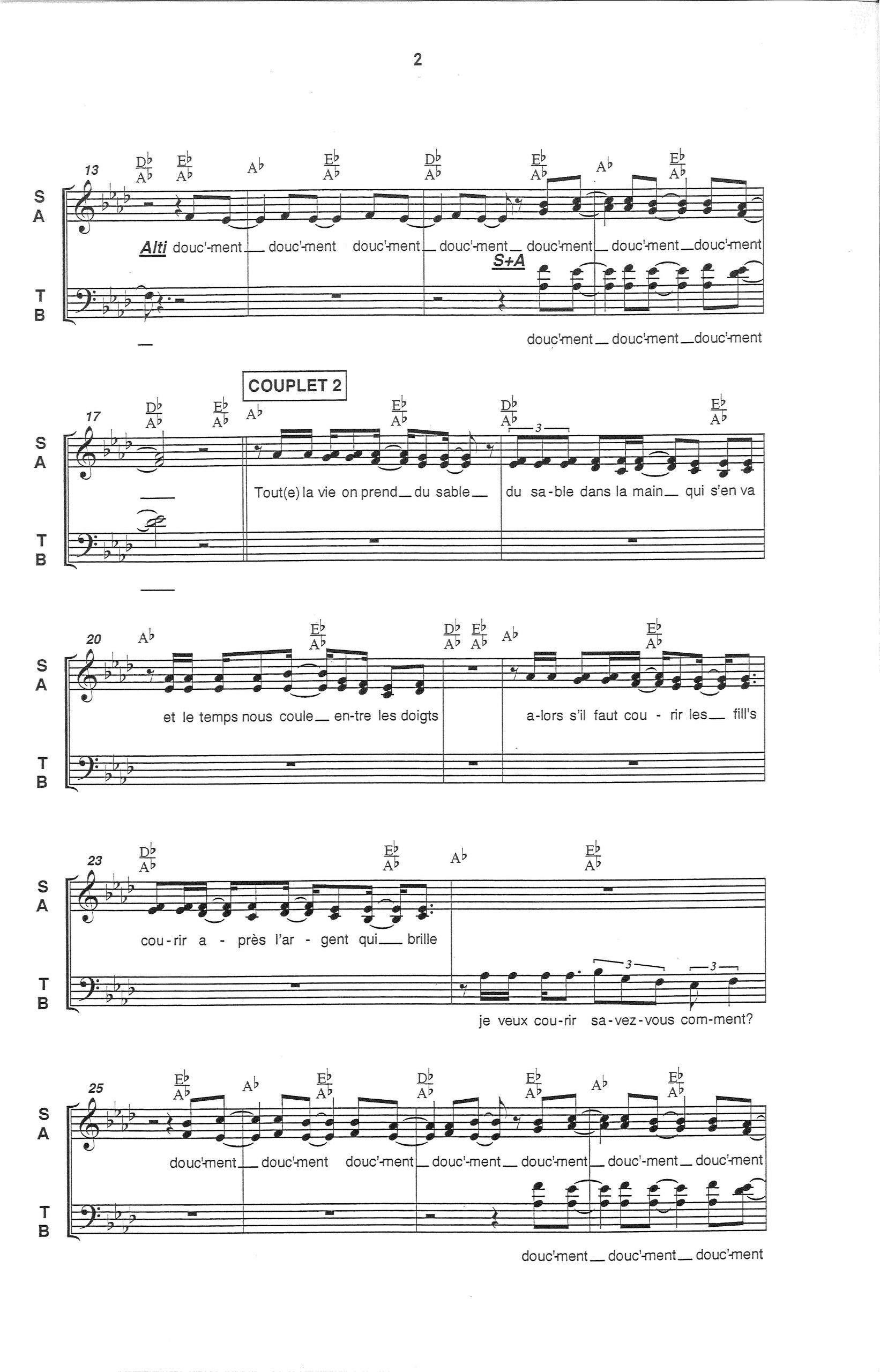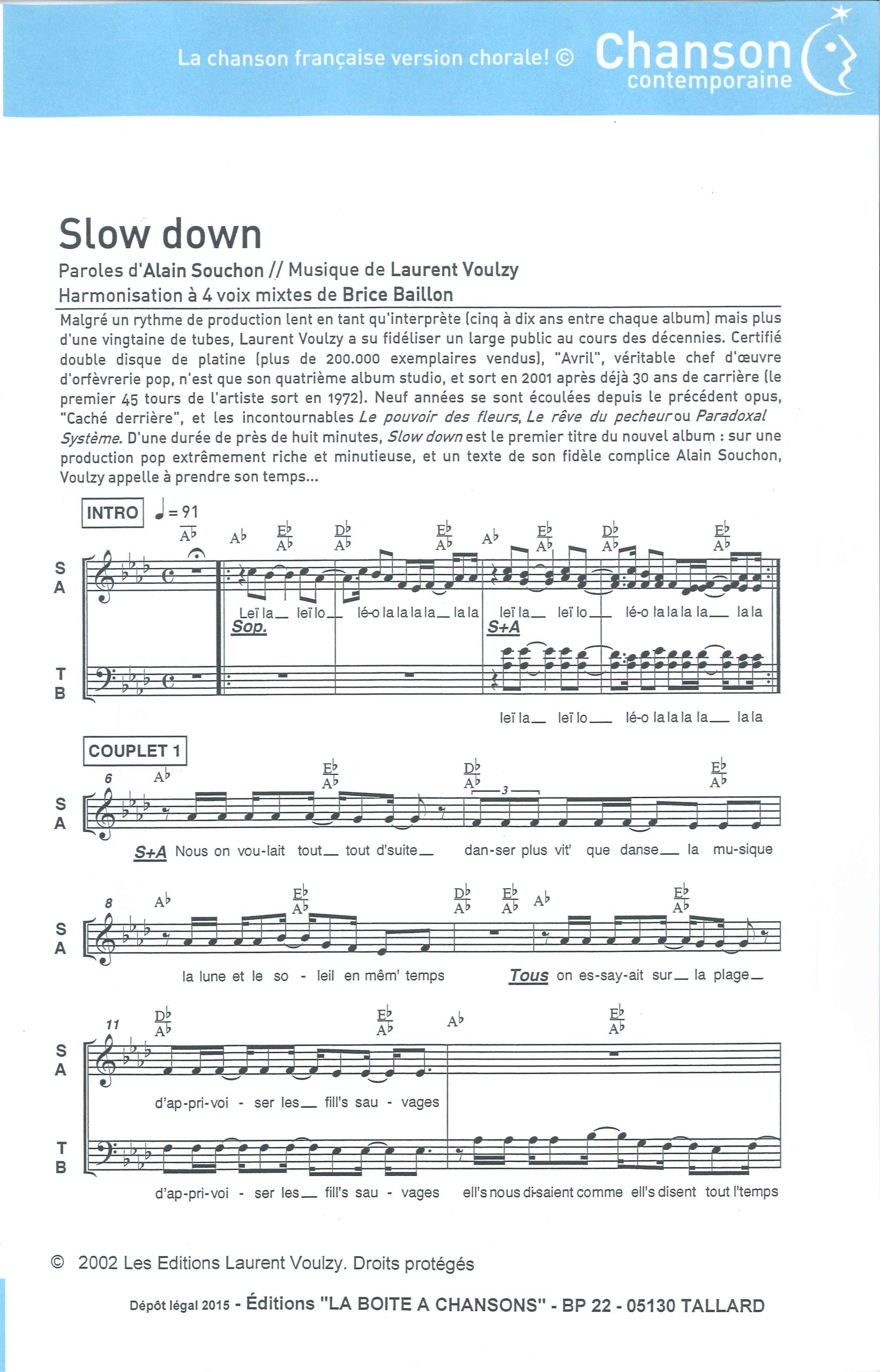 Paroles et musique : A. Souchon / L. Voulzy Harmonisation ; Brice BAILLON
