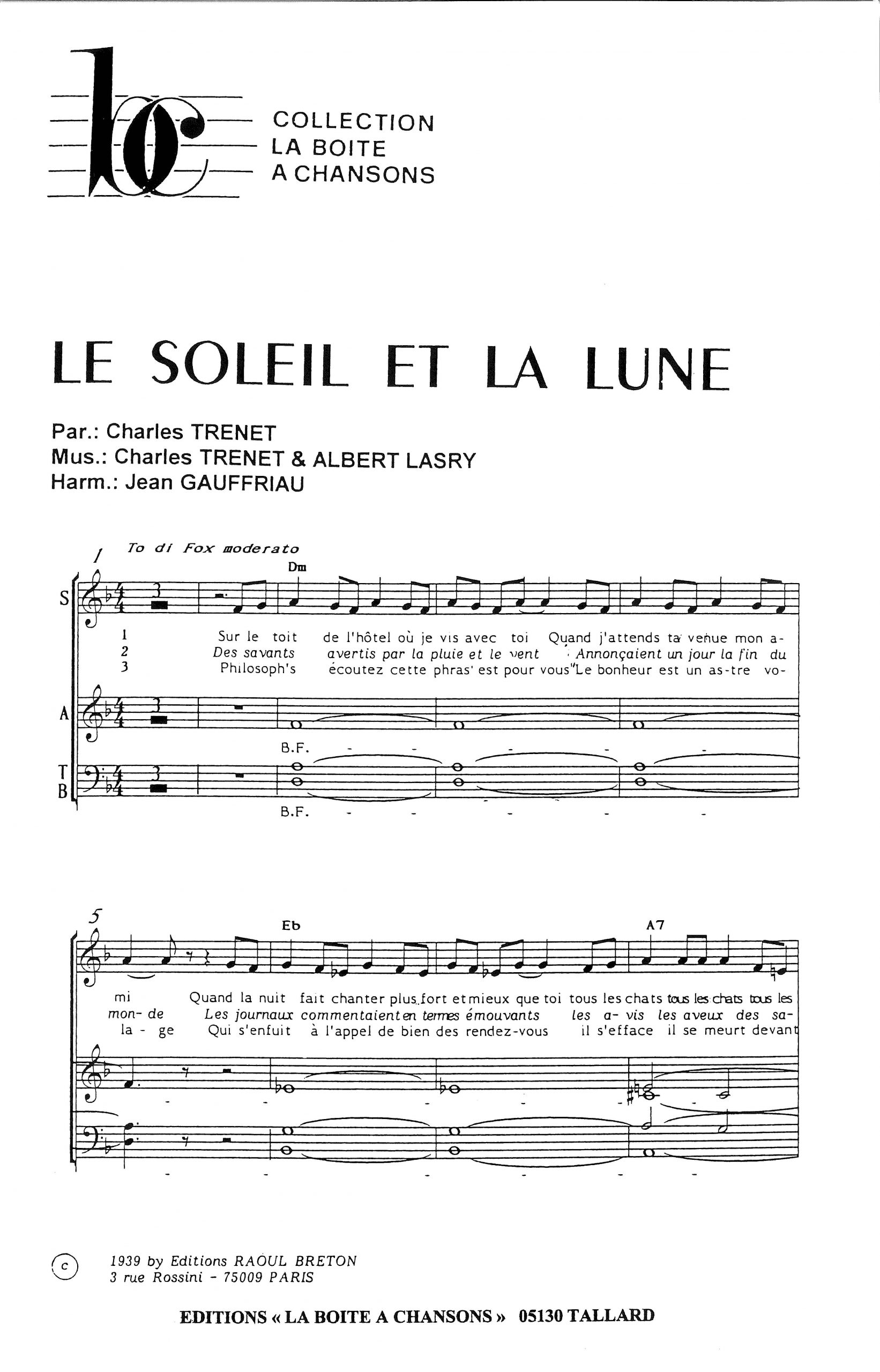 Paroles et musique de TRENET/LASRY Harmonisation : Jean GAUFFRIAU