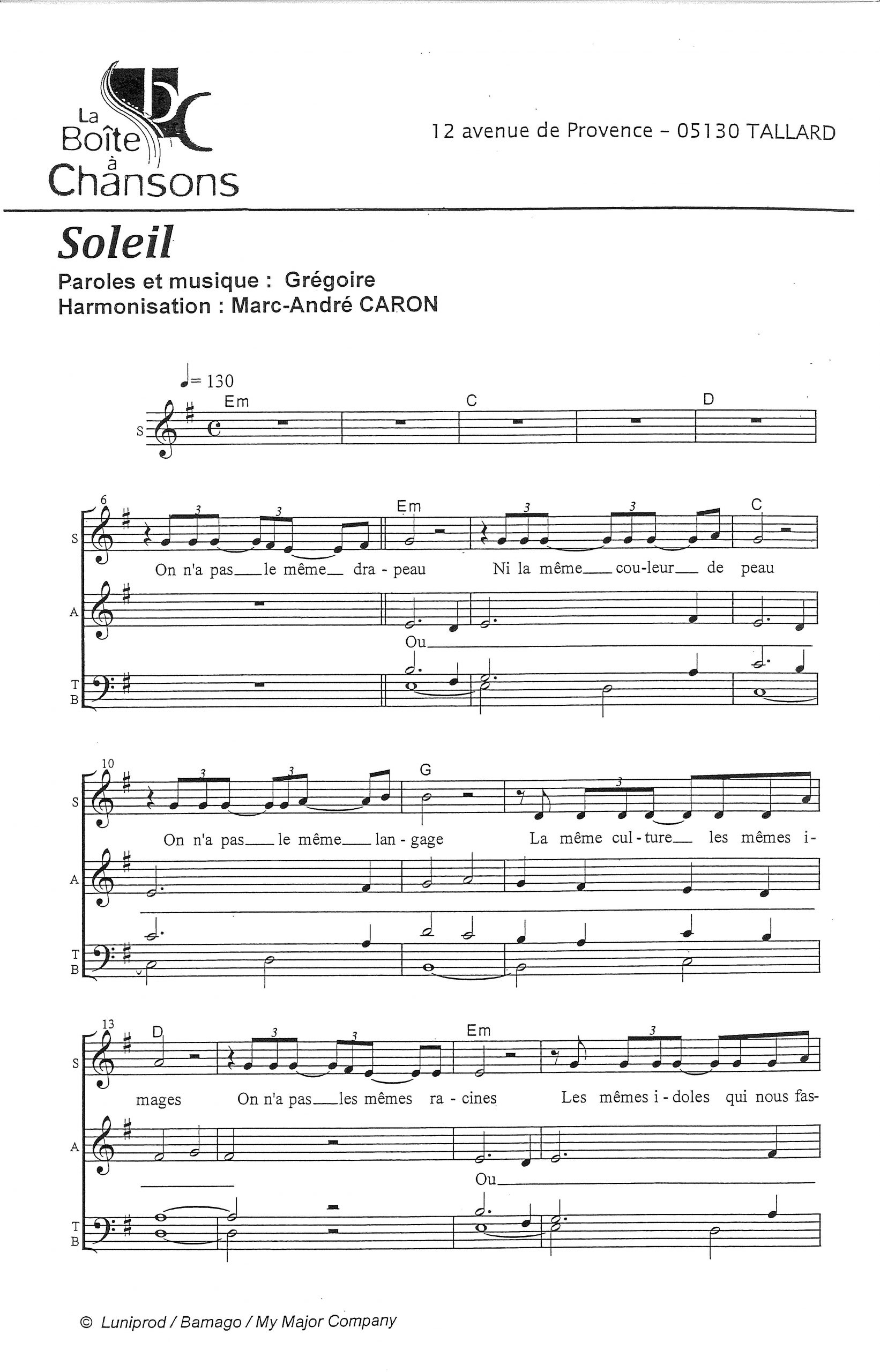 Harmonisation : Marc André CARON