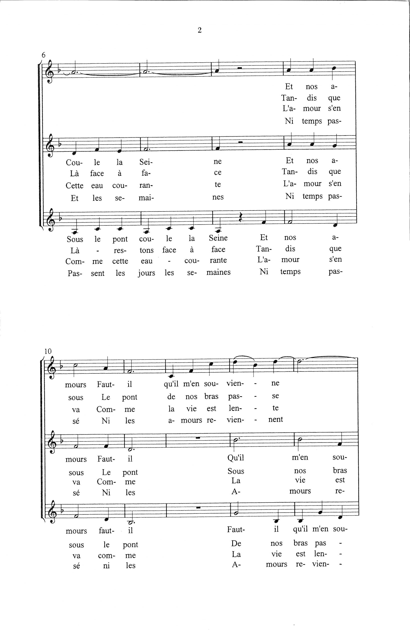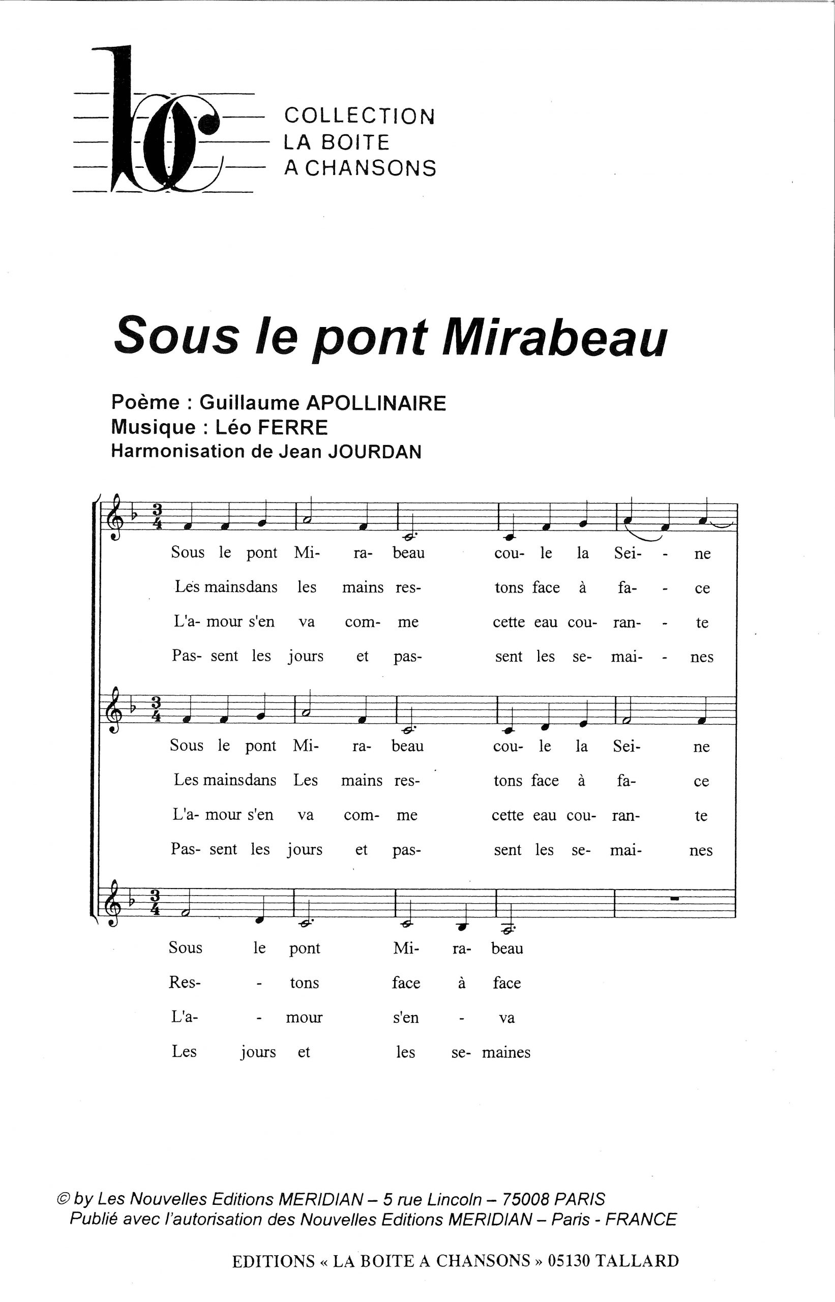 Paroles et musique de APOLLINAIRE/FERRE Harmonisation : Jean JOURDAN