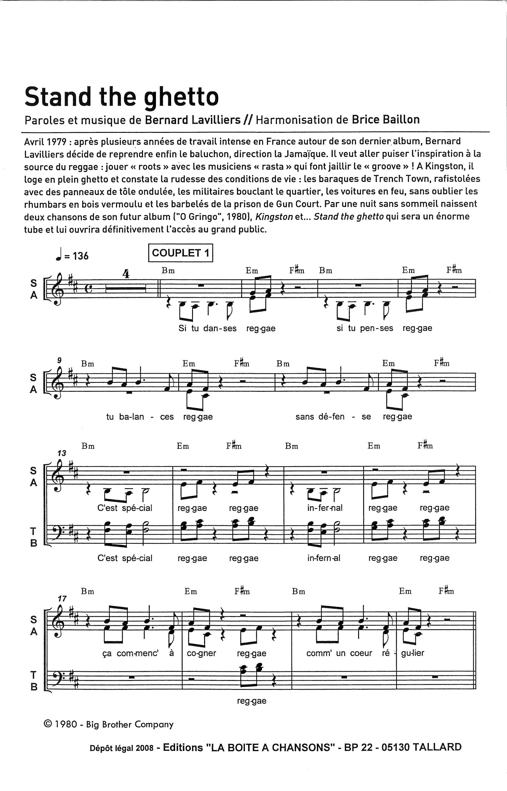 Paroles et musique de LAVILLIERS Harmonisation : Brice BAILLON