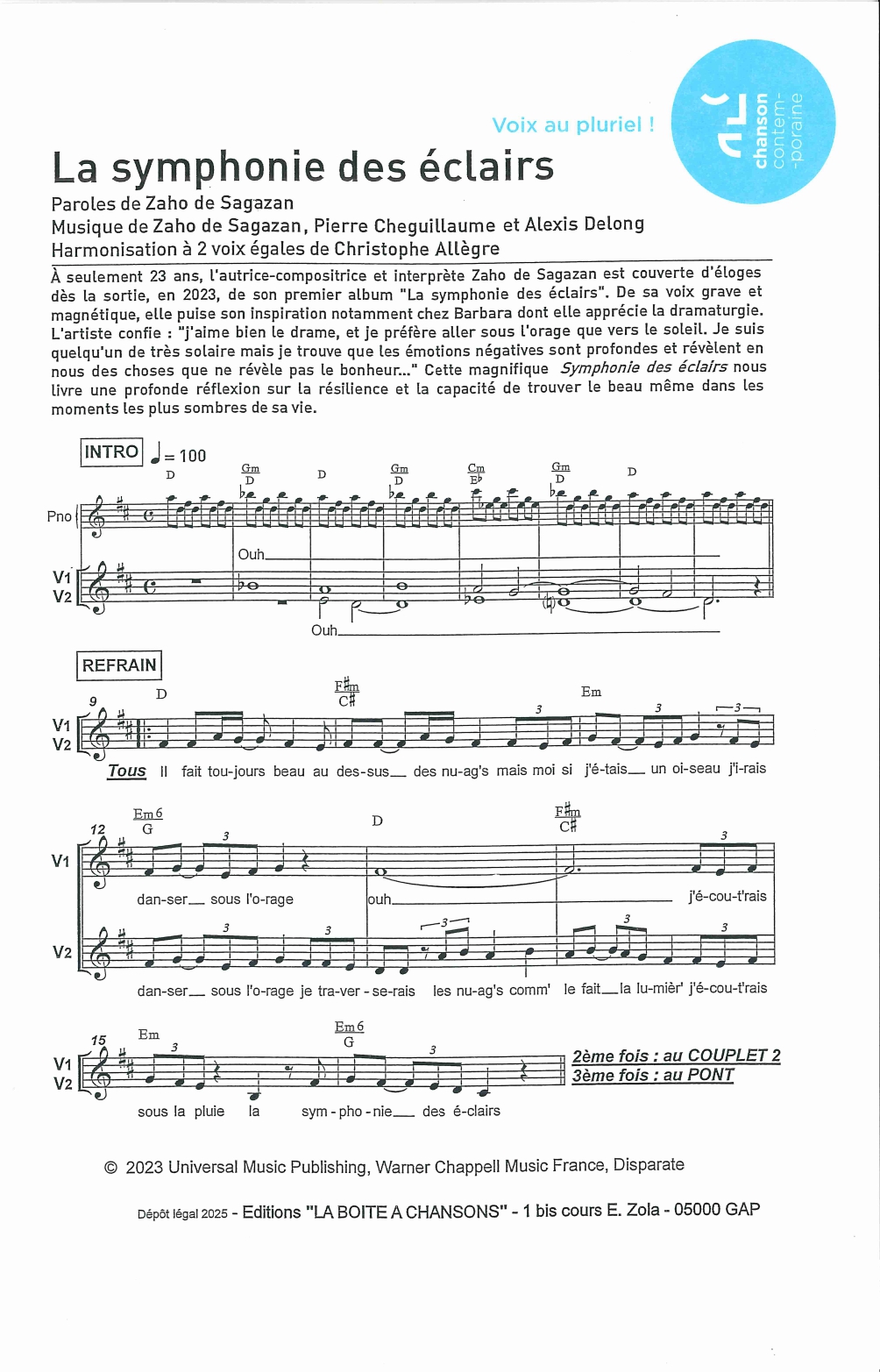 SYMPHONIE DES ECLAIRS – 2 voix égales