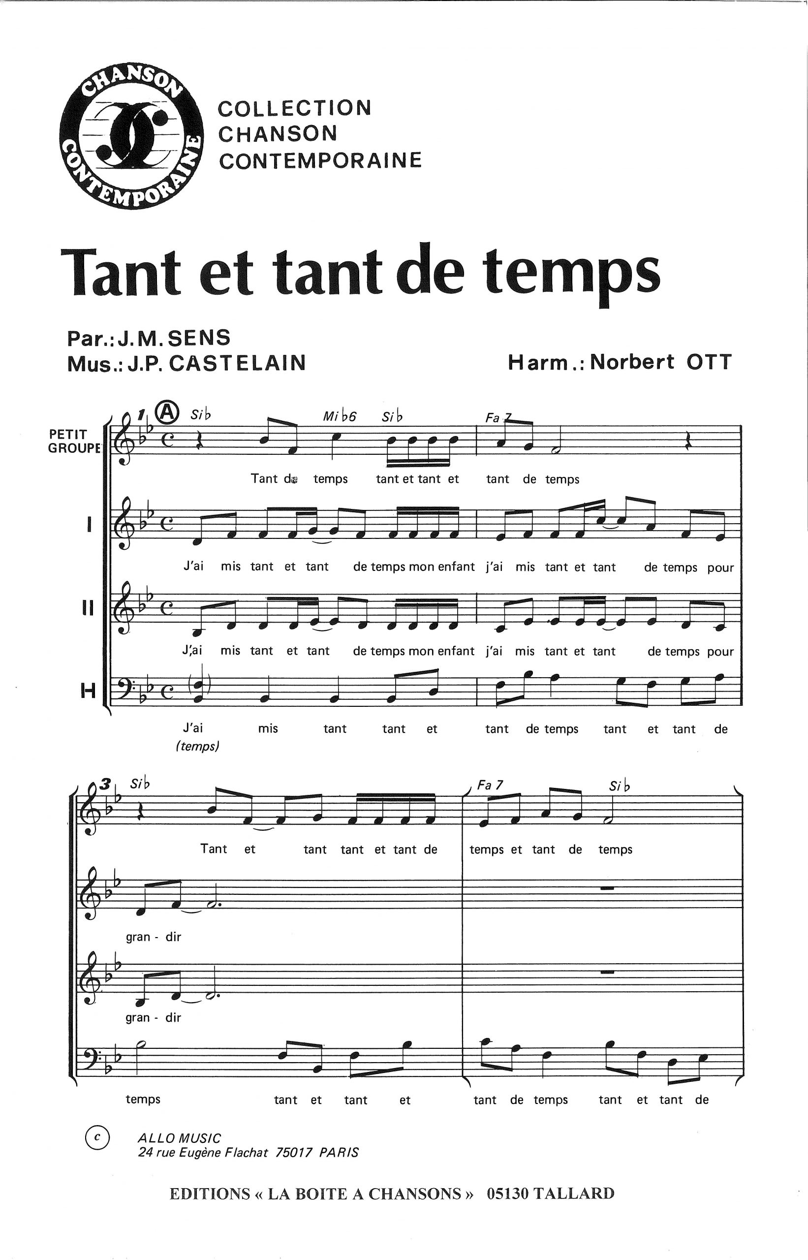 Paroles et musique de SENS/CASTELAIN Harmonisation : Norbert OTT