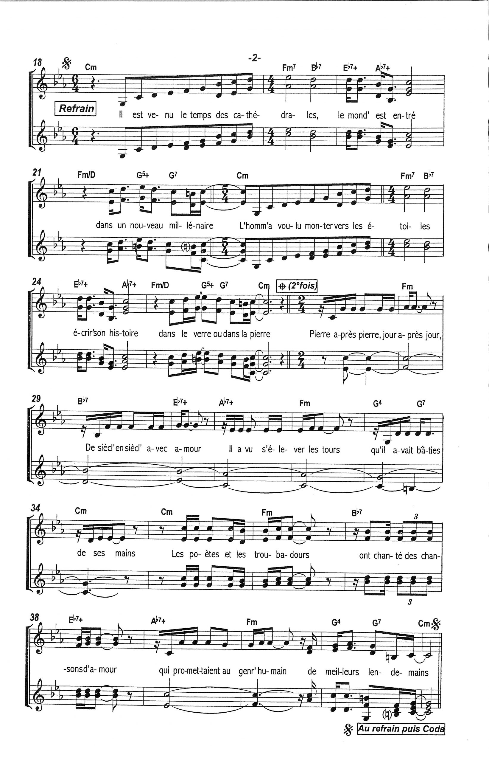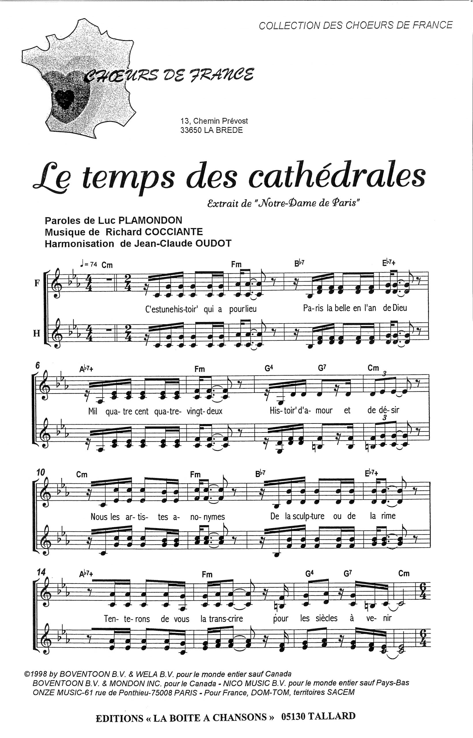 Paroles et musique de PLAMONDON/COCCIANTE Harmonisation : Jean Claude OUDOT
