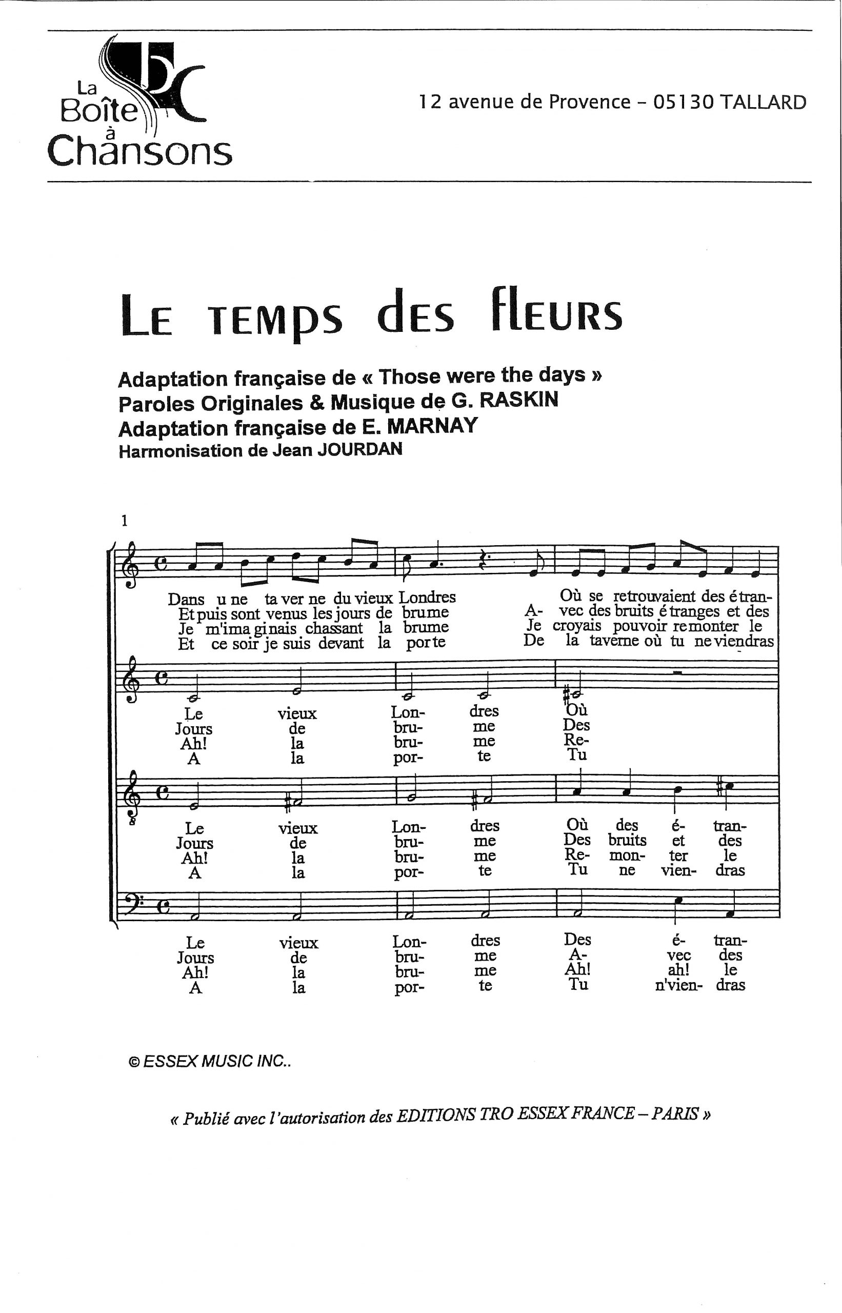 Paroles et musique de RASKIN/MARNAY Harmonisation : Jean JOURDAN