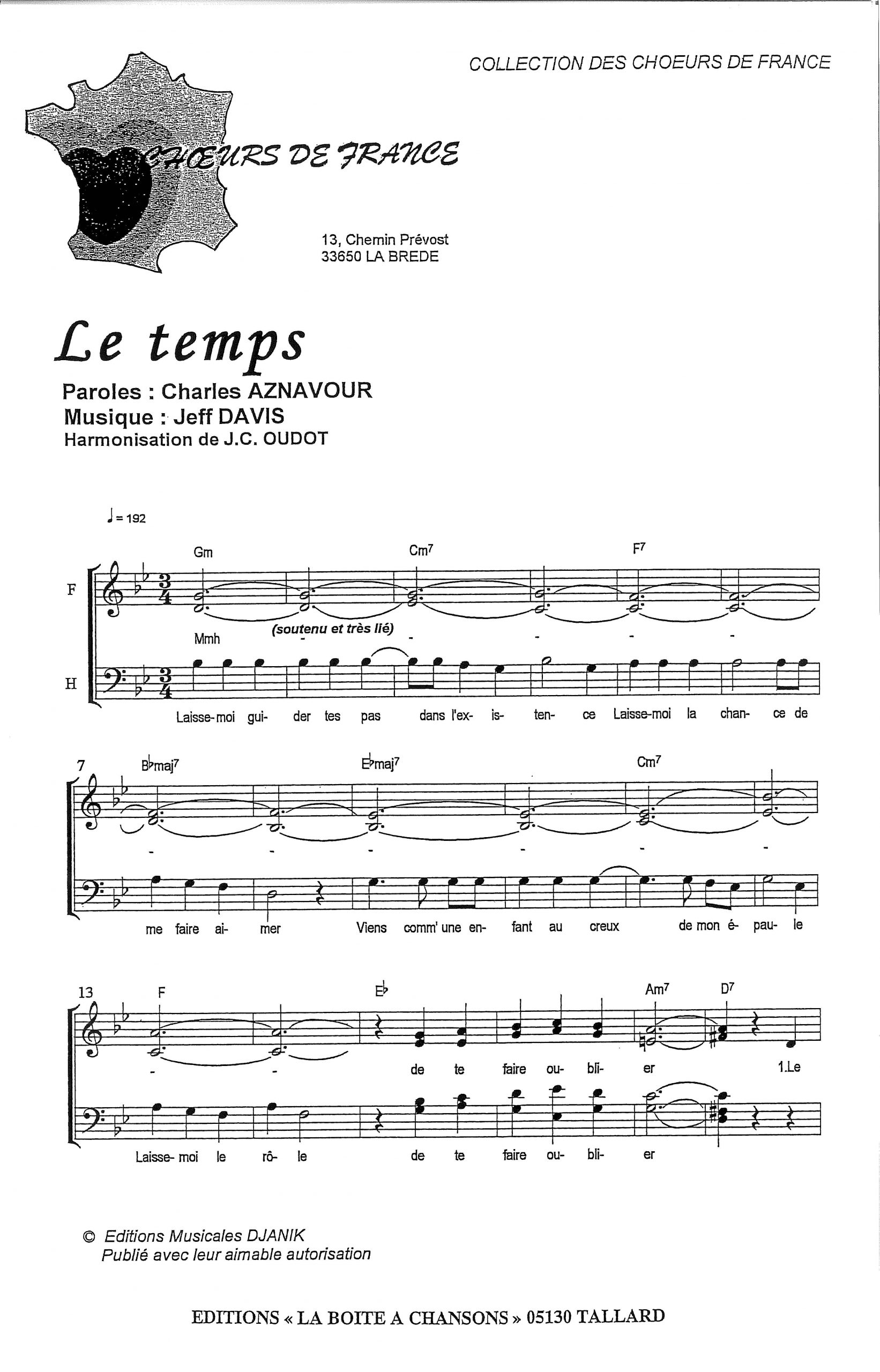 Paroles et musique de AZNAVOUR/DAVIS Harmonisation : Jean Claude OUDOT