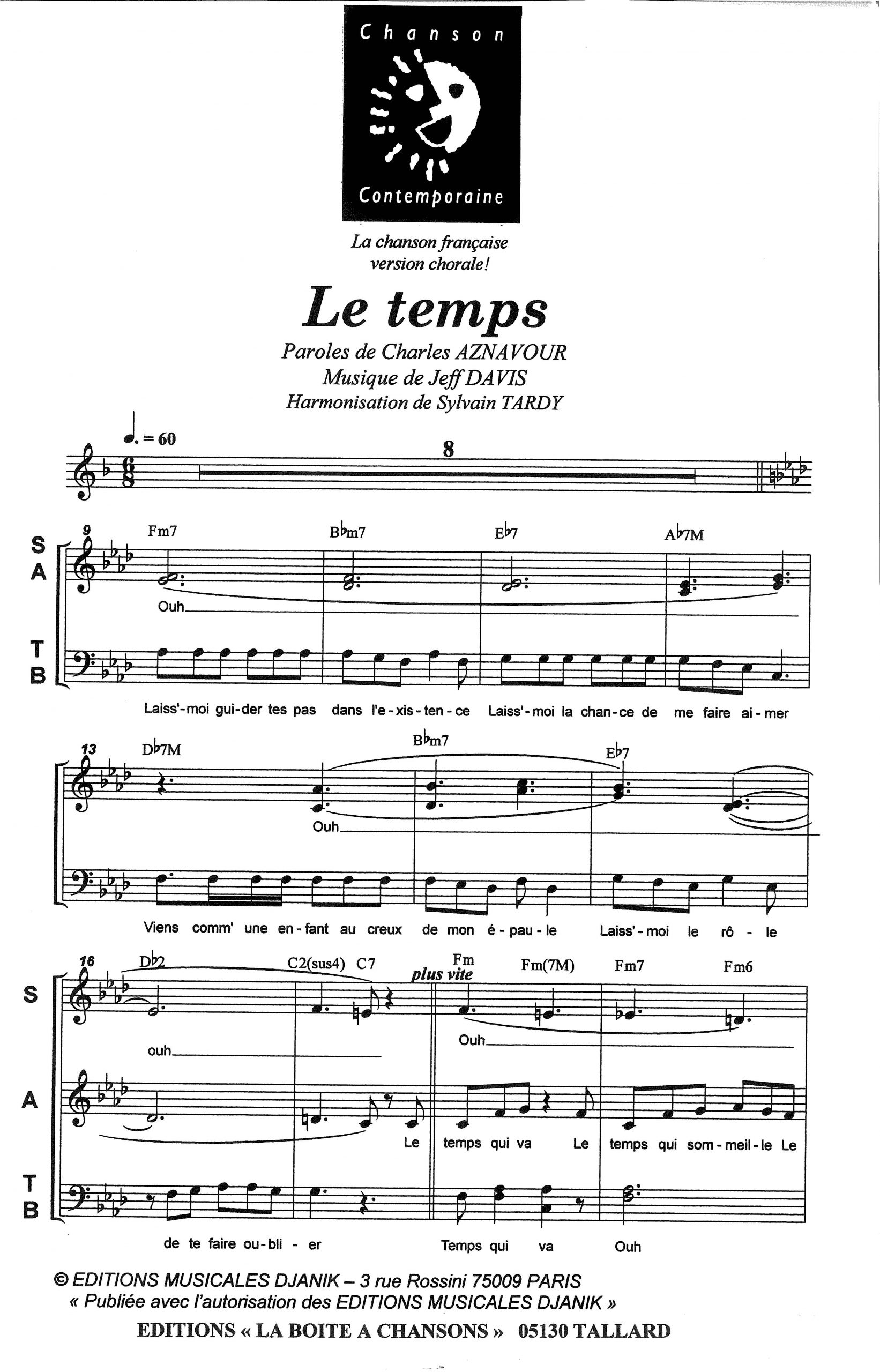 Paroles et musique de AZNAVOUR/DAVIS Harmonisation : Sylvain TARDY
