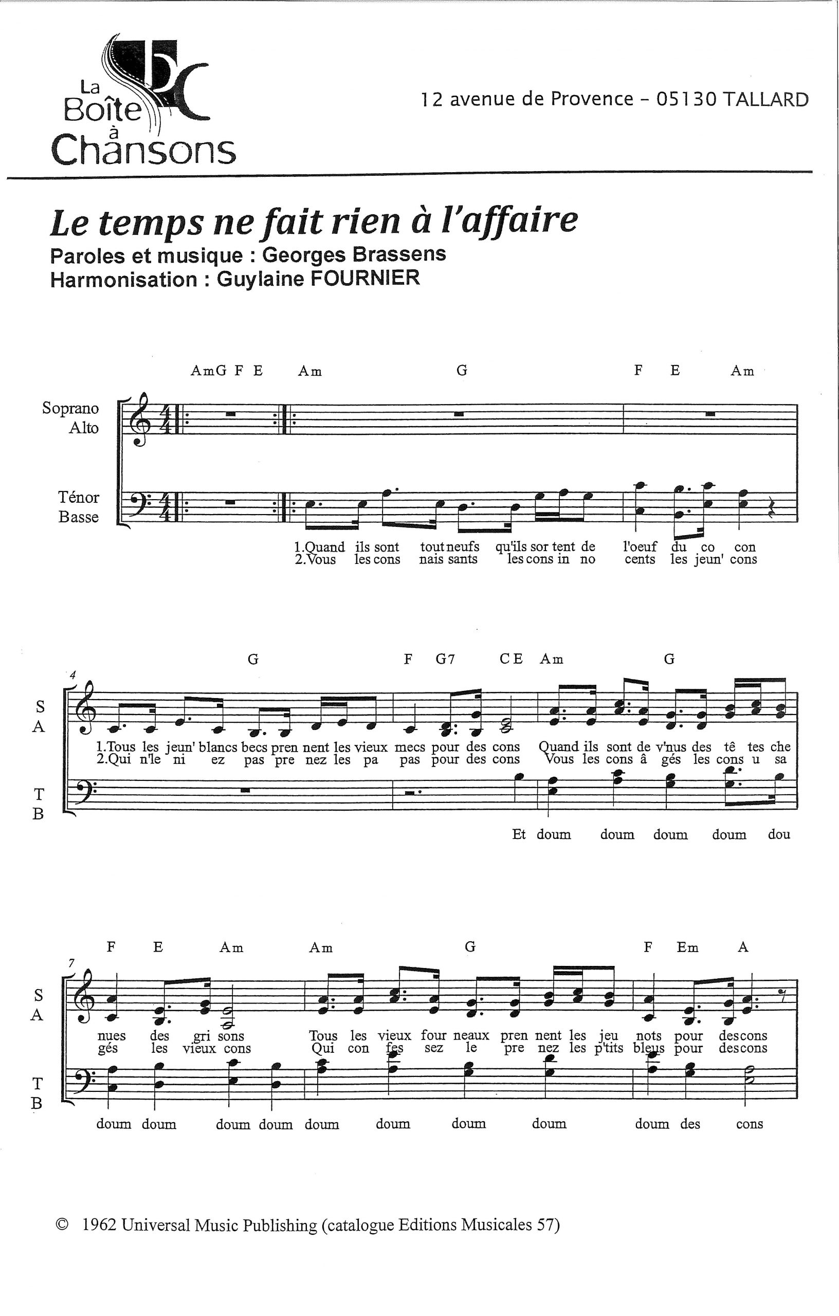 Paroles et musique de BRASSENS Harmonisation : Guylaine FOURNIER