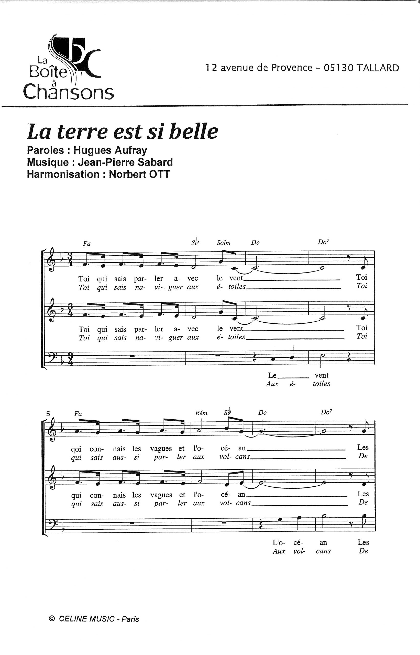 Paroles et musique de AUFRAY Harmonisation : Norbert OTT