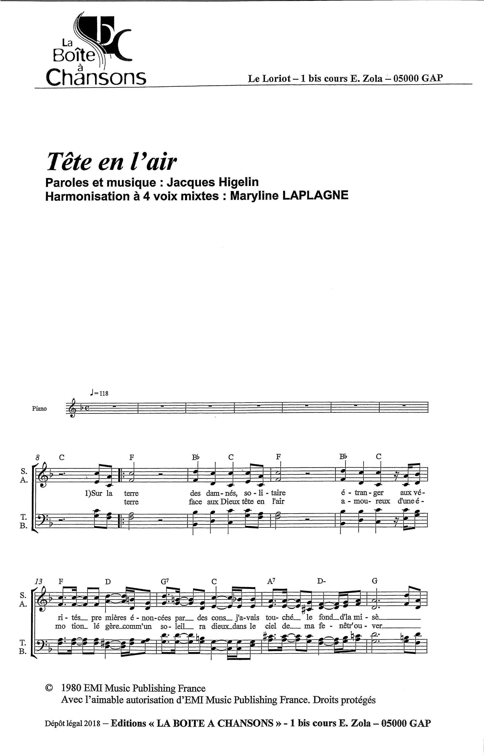 Paroles et musique : J. Higelin Harmonisation Maryline Laplagne