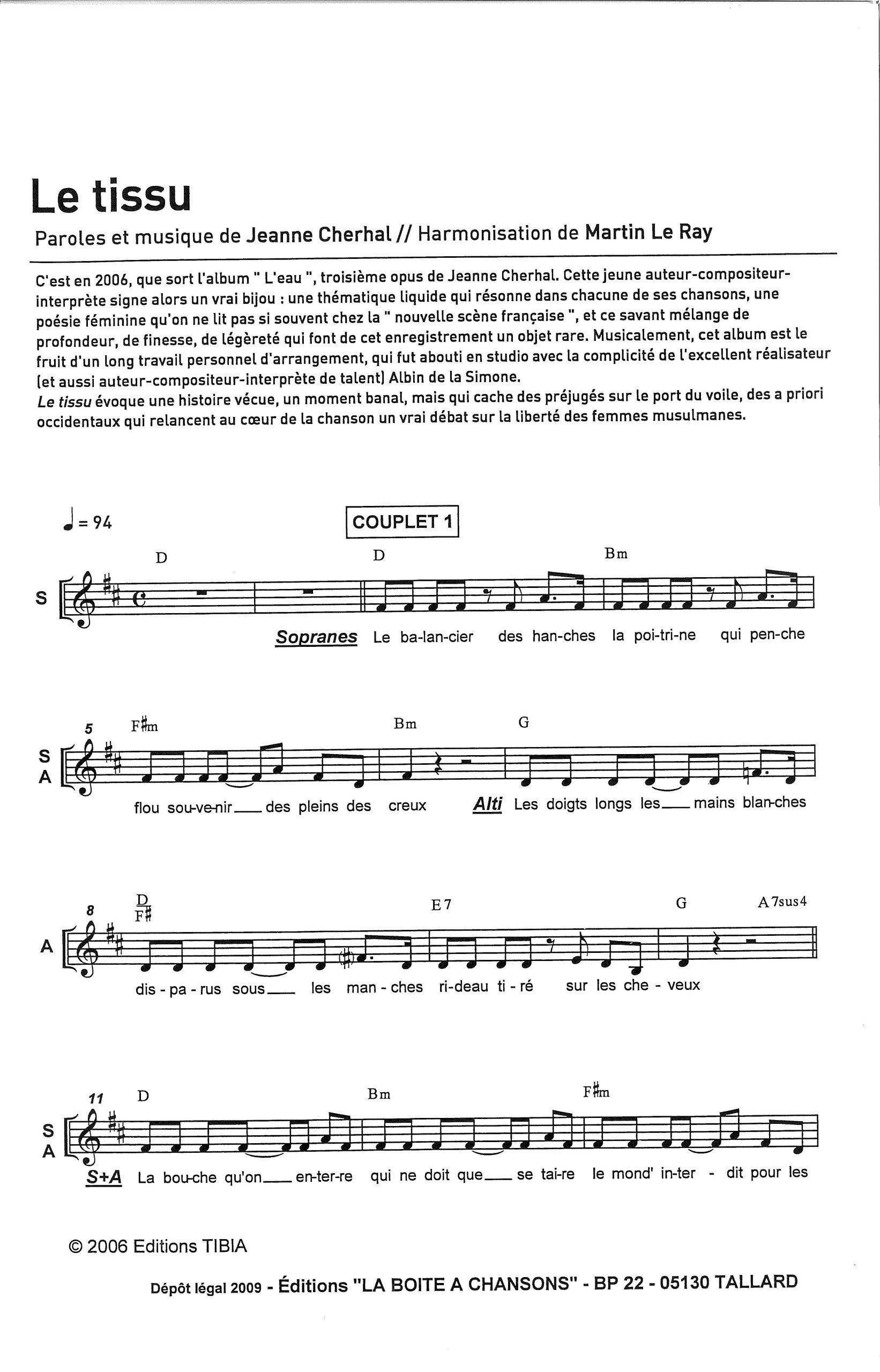 Paroles et musique de CHERHAL Harmonisation : Martin LE RAY