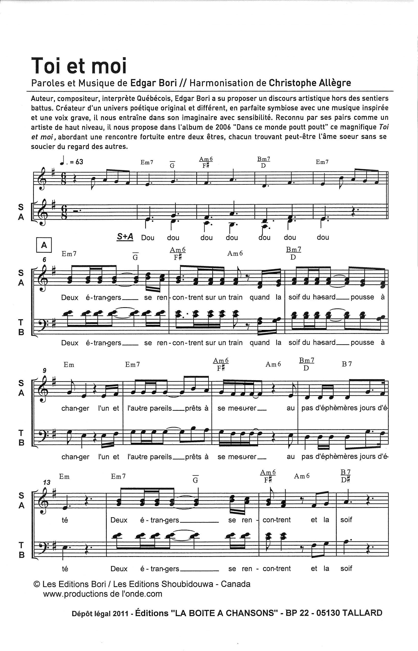 Paroles et musique de BORI Harmonisation : Christophe ALLEGRE