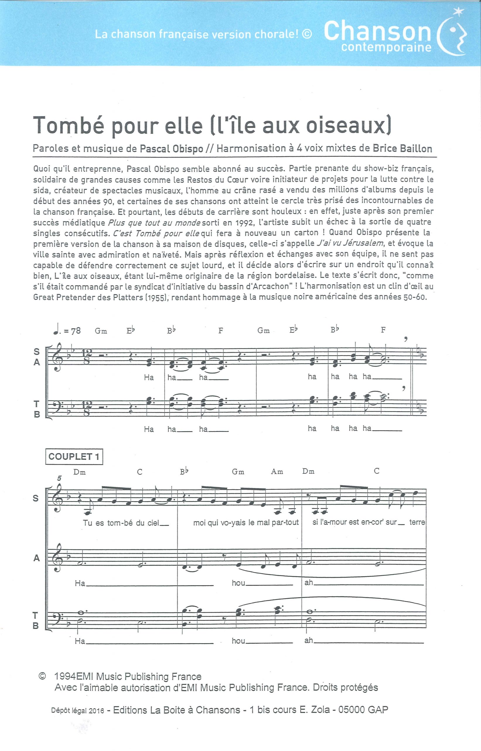 Paroles et musique : Obispo Harmonisation : Brice BAILLON